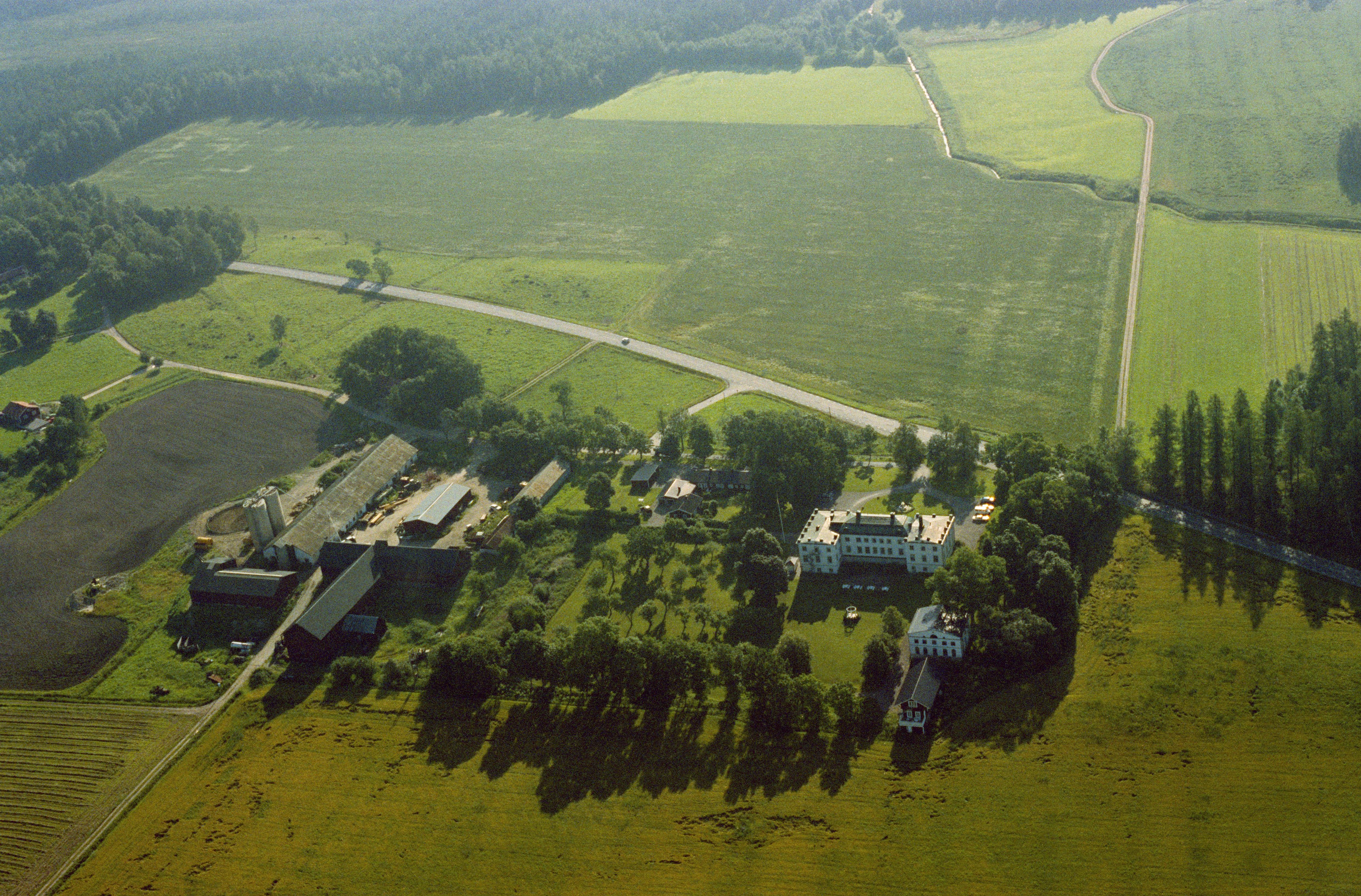 Beskrivning: Utterbäckens dalgång. Yxe herrgård / konvalecenthem. Vägmärke RAÄnr Linde 14:1 vid vägen sydväst om herrgården. Bilden är tagen mot (väderstreck): Ö