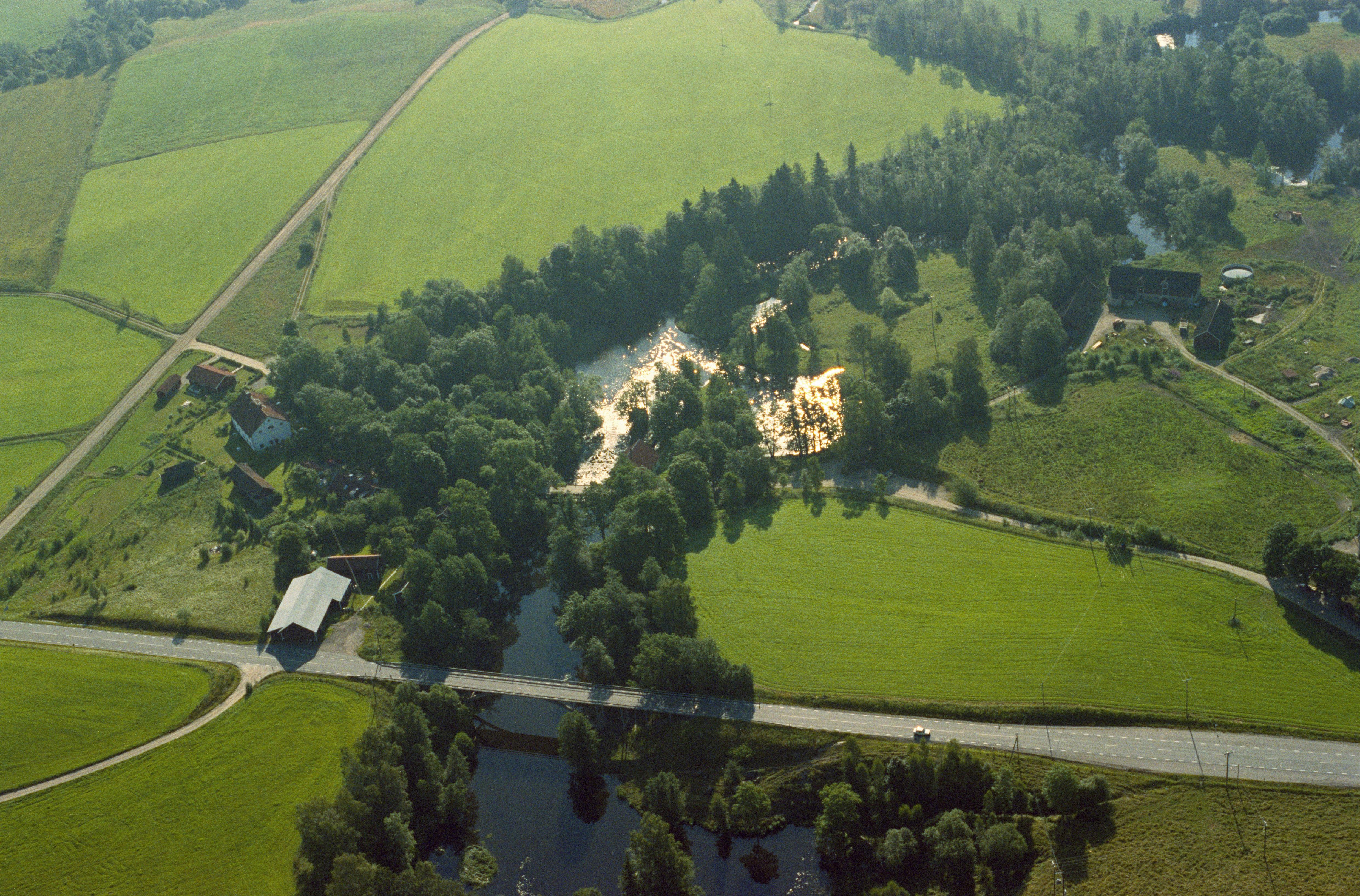 Beskrivning: Järleåns dalgång. Vid bildens mitt bro mellan byarna Nedre Järle (vid bildens mitt) och Övre Järle (uppe till höger). Stadslager RAÄnr Nora 288:1, hytt- och hammarområde RAÄnr Nora 91:1, bro och träindustri Nora 90:1-2, kvarn Nora 724, Bilden är tagen mot (väderstreck): OSO