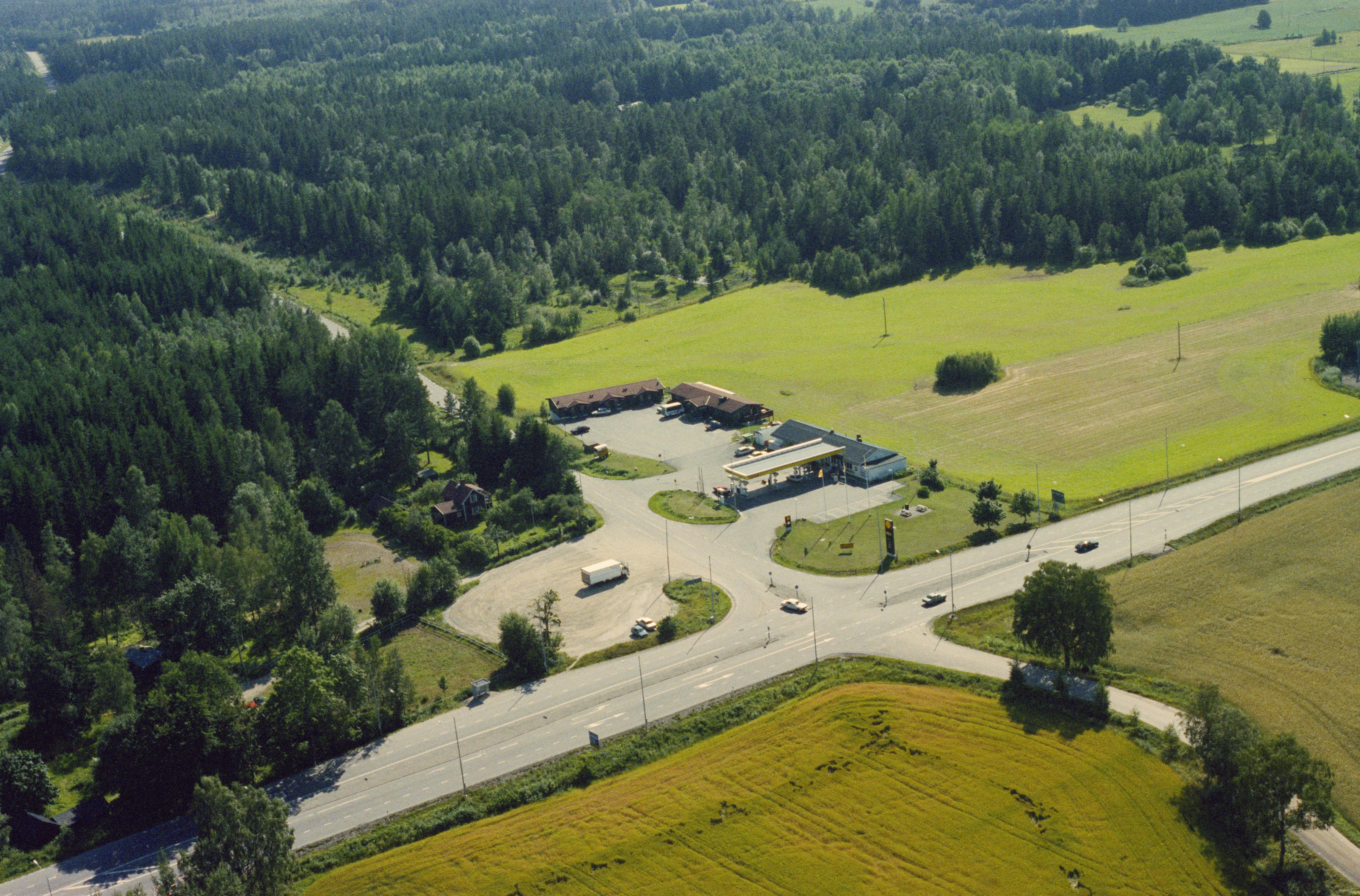 Beskrivning: Vid bildens mitt vägkrog och bensinstation i området Kilen i södra delen av Sanna by. Gruvområde (koppargruva) RAÄnr Vintrosa 6:1 i skogen i bildens övre kant. Bilden är tagen mot (väderstreck): SV