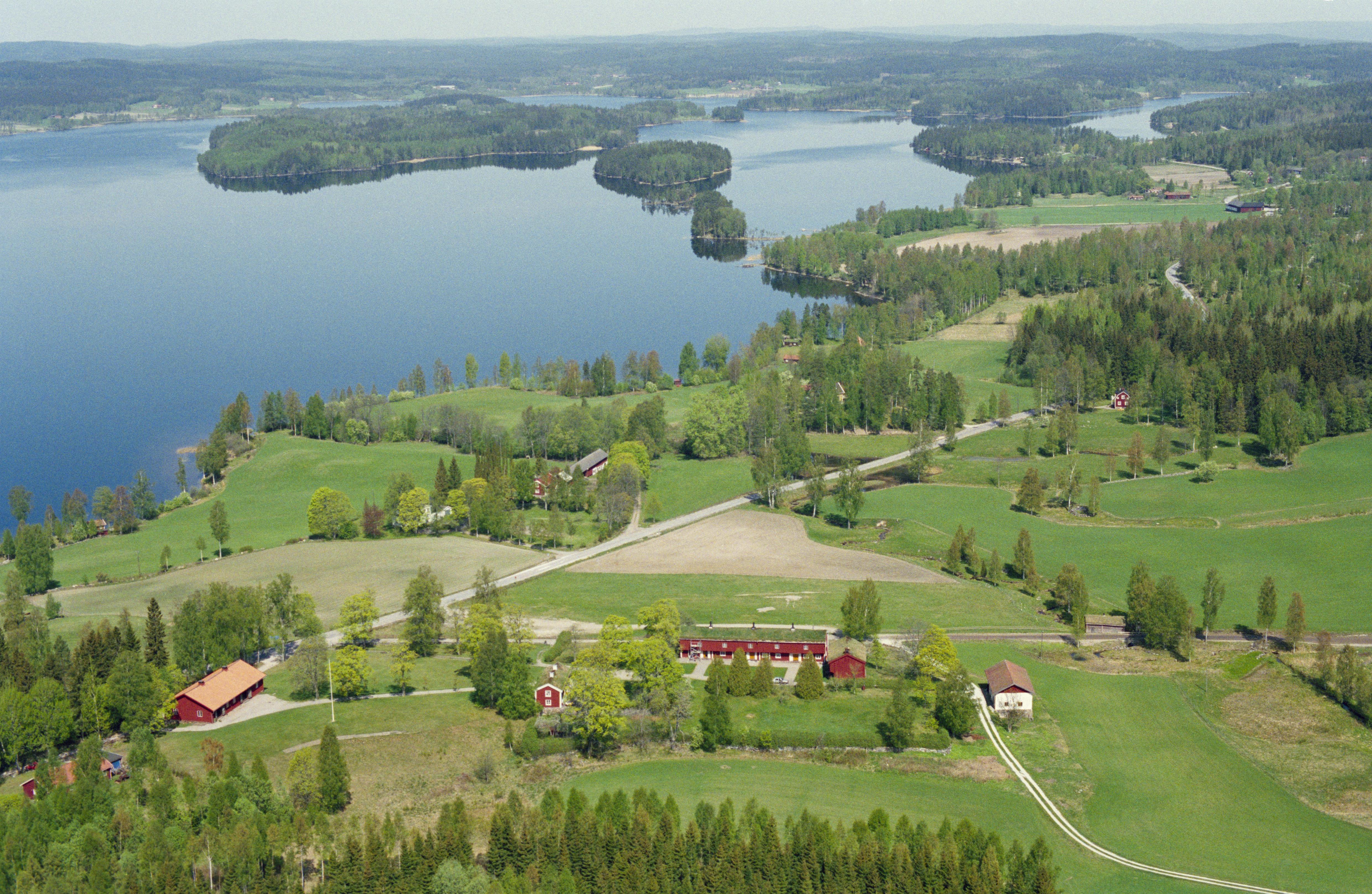Beskrivning: Siggebohyttans bruk vid sjön Usken. Under bildens mitt byggnadsminnet Siggebohyttans bergmansgård RAÄnr Linde 24:1. Vid bildens mitt hyttområde Linde 11:1. Bilden är tagen mot (väderstreck): N