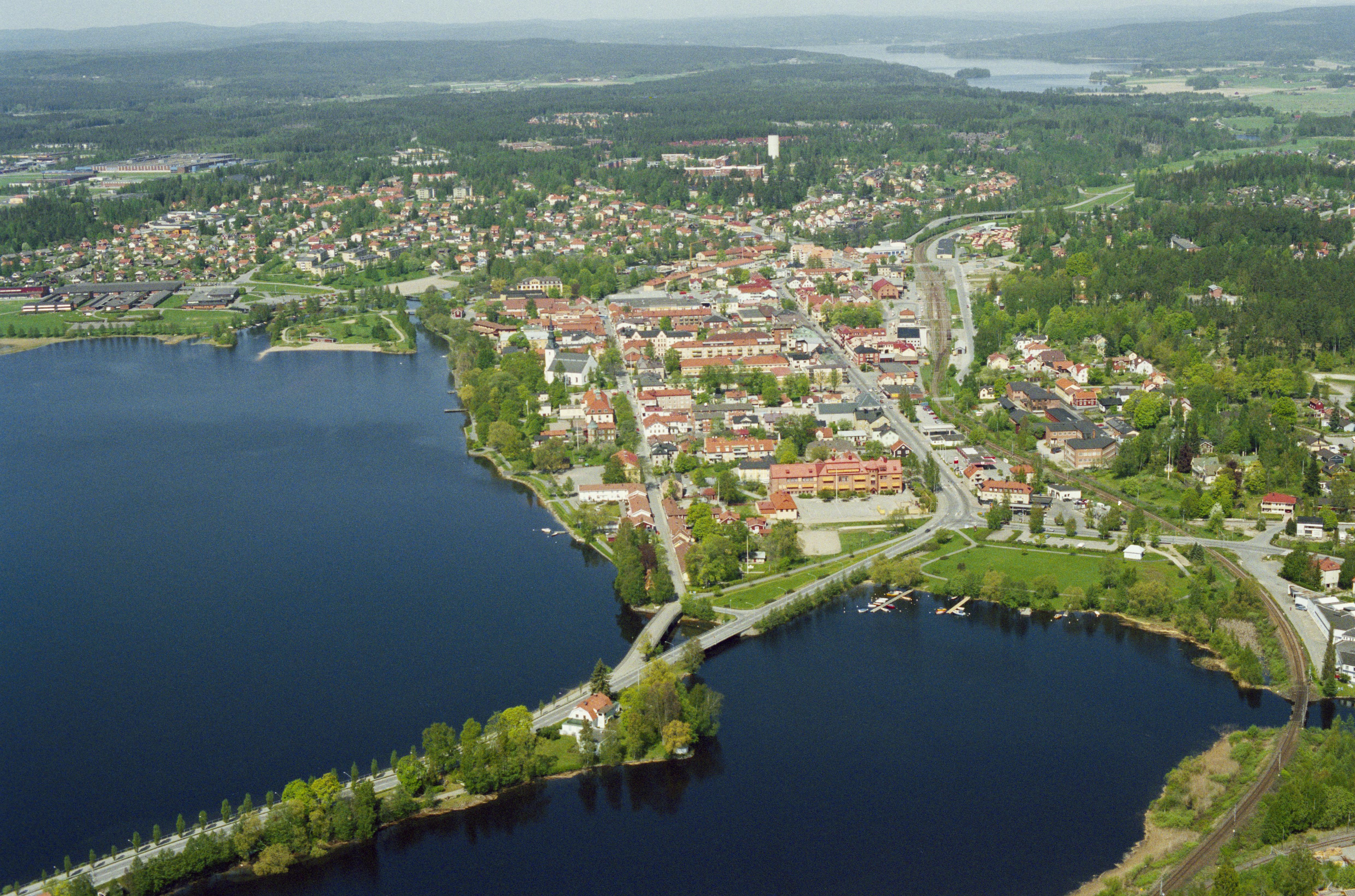 Beskrivning: Lindesbergs stad vid Bottenån och Stora Lindessjön. Vid bildens mitt Lindesbergs kyrka i stadslager RAÄnr Linde 484:1. I bildens vänstra kant gränsen mot socknet Linde. Lilla Lindessjön nere till höger. Bilden är tagen mot (väderstreck): NV