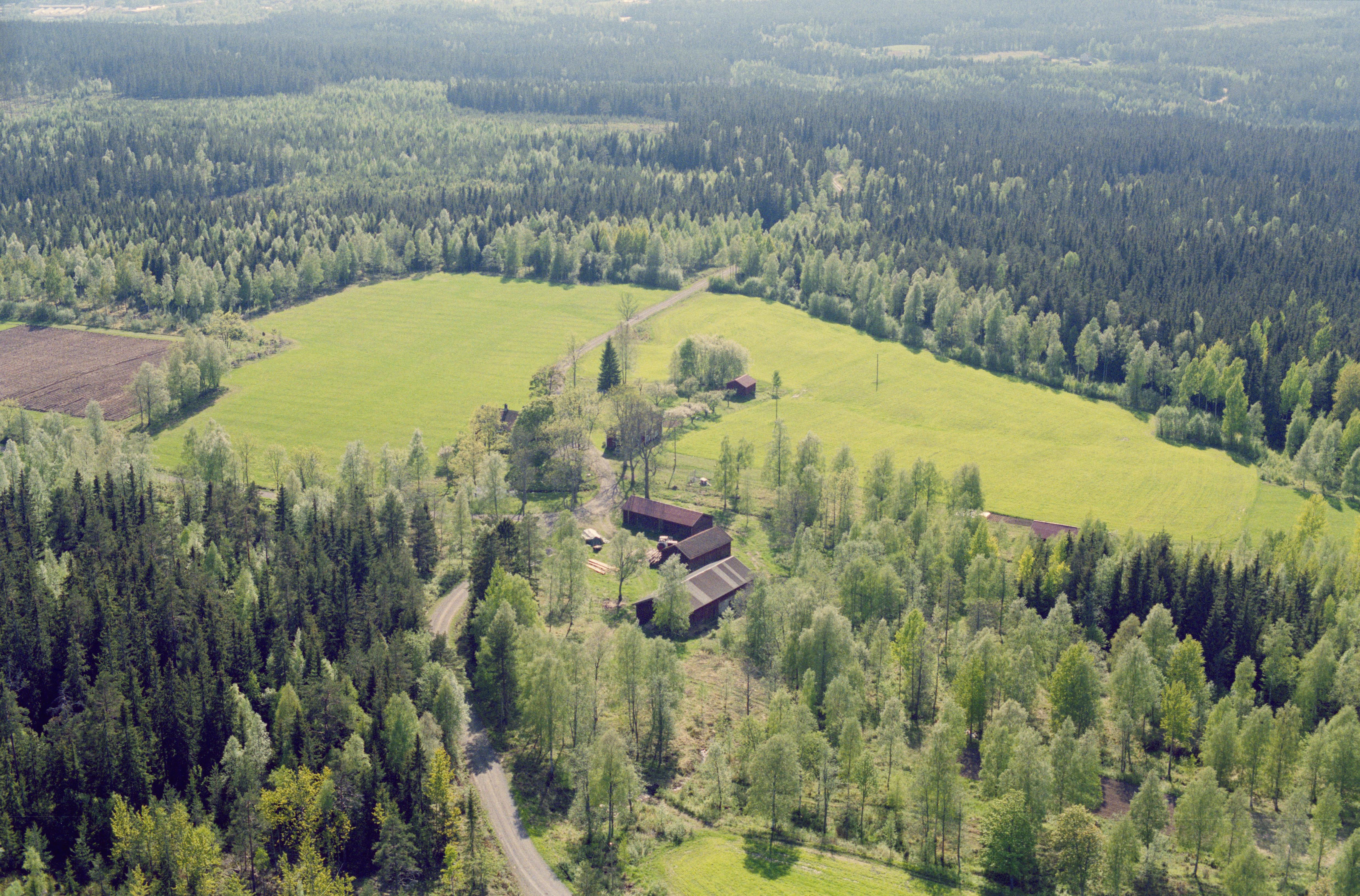 Beskrivning: Ljusnarsbergs hembygdsgård i Södra Finnfall. I skogen uppe till höger lägenhetsbebyggelse RAÄnr Ljusnarsberg 919. Bilden är tagen mot (väderstreck): VSV