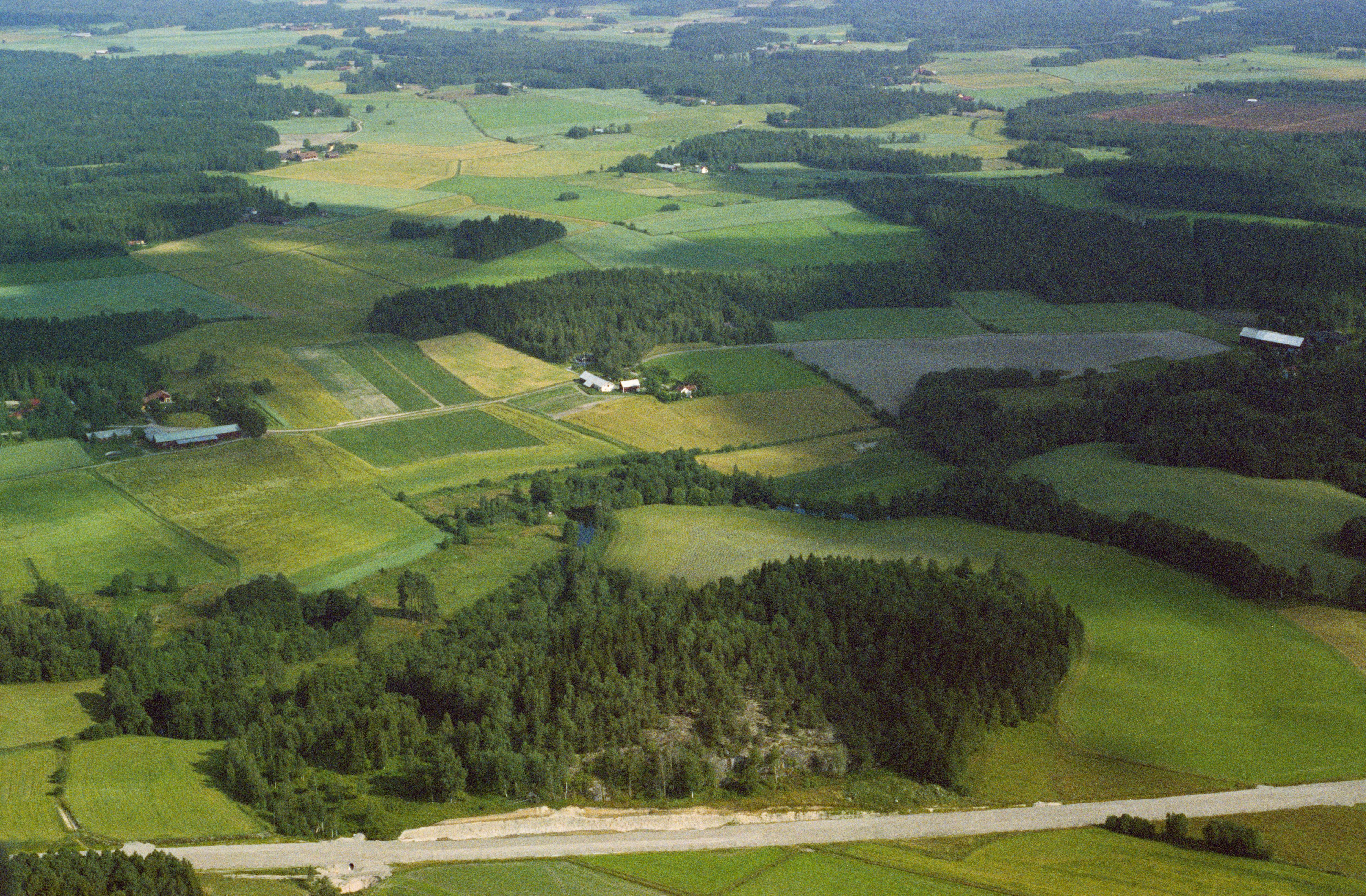 Beskrivning: Järleåns dalgång. Ån markerar gränsen mellan socknen Nora (i bildens nedre del) och Ervalla (i bildens övre del). I bildens nedre del hyttlämning RAÄnr Nora 104:1 i östra delen av Södra Fingerboda by. Vid bildens mitt Grindtorps by i Ervalla socken. Bilden är tagen mot (väderstreck): OSO