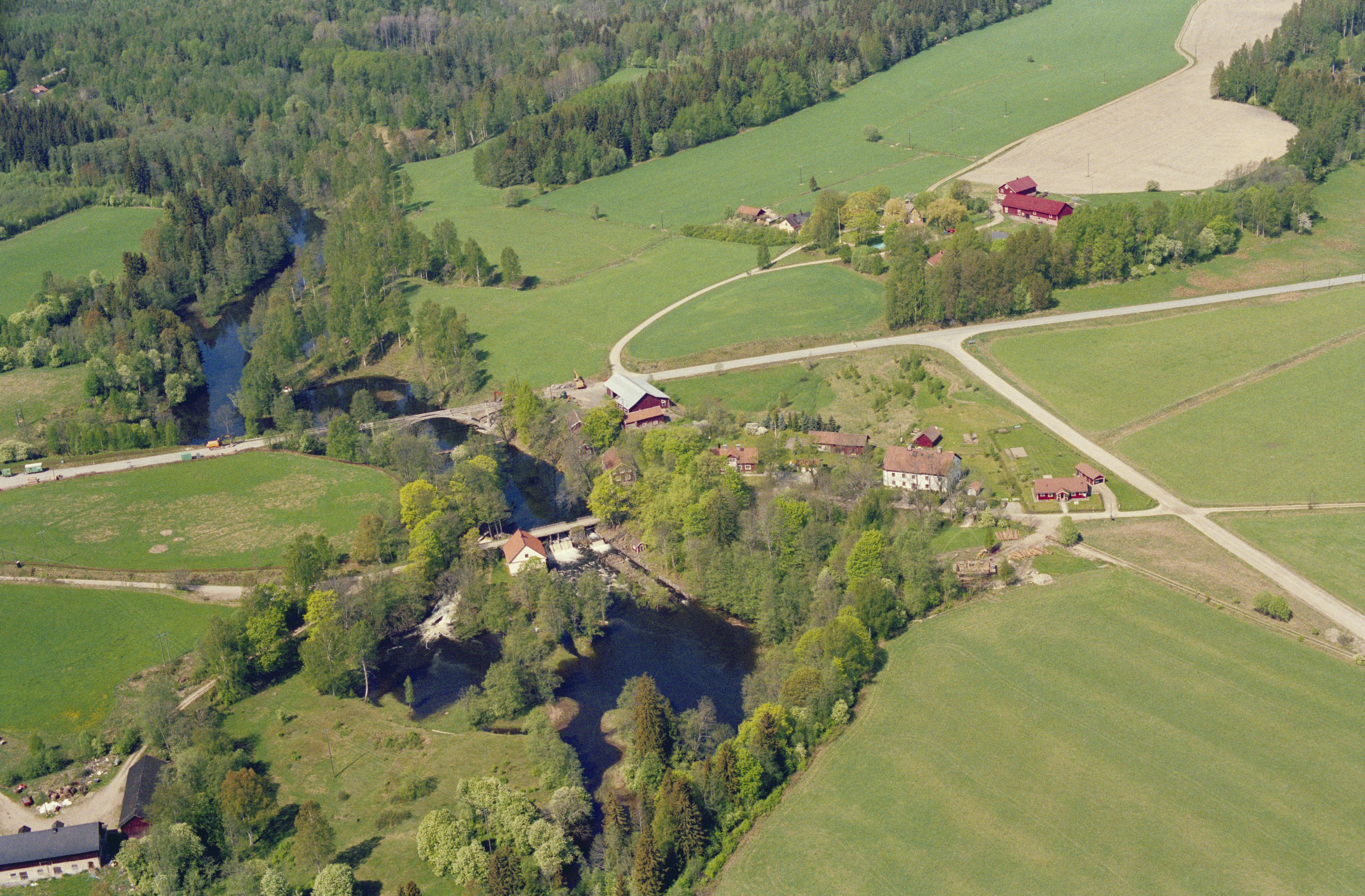 Beskrivning: Järleåns dalgång. Vid bildens mitt bro mellan byarna Nedre Järle (vid bildens mitt) och Övre Järle (till vänster, ej i bilden). Stadslager RAÄnr Nora 288:1, hytt- och hammarområde RAÄnr Nora 91:1, bro och träindustri Nora 90:1-2, kvarn Nora 724, Bilden är tagen mot (väderstreck): NV