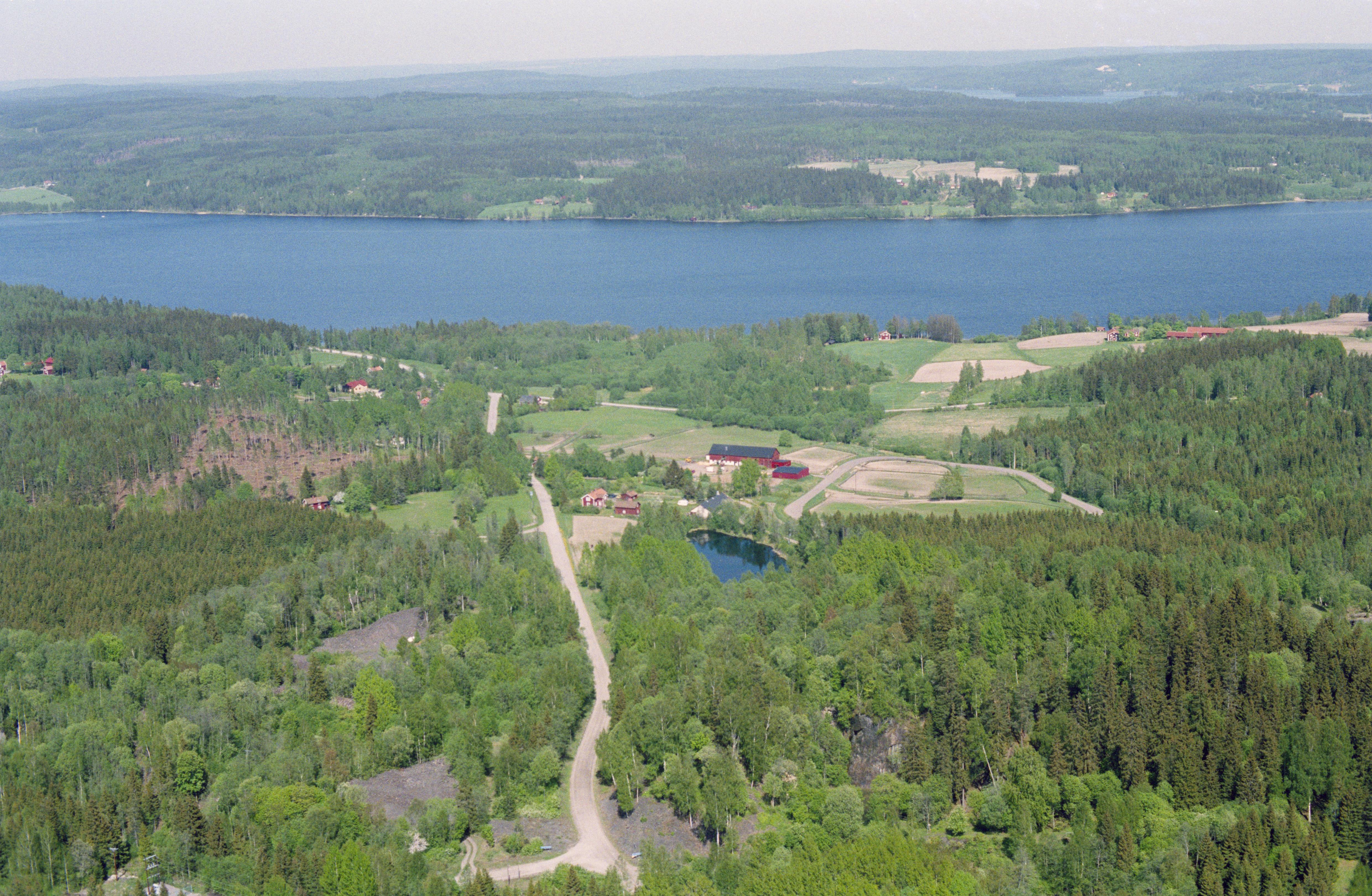 Beskrivning: Gruvparken mellan byarna Klacka-Lerberg i Nora socken (i bildens nedre kant) och Kåfallstorp i Järnboås socken. Under bildens mitt gruvområde RAÄnr Järnboås 85:1 m.fl. Till vänster om vägen transportbana för malm RAÄnr Järnboås 55:1. Över bildens mitt Kåfallstorps by vid Fåsjön. Bilden är tagen mot (väderstreck): NO