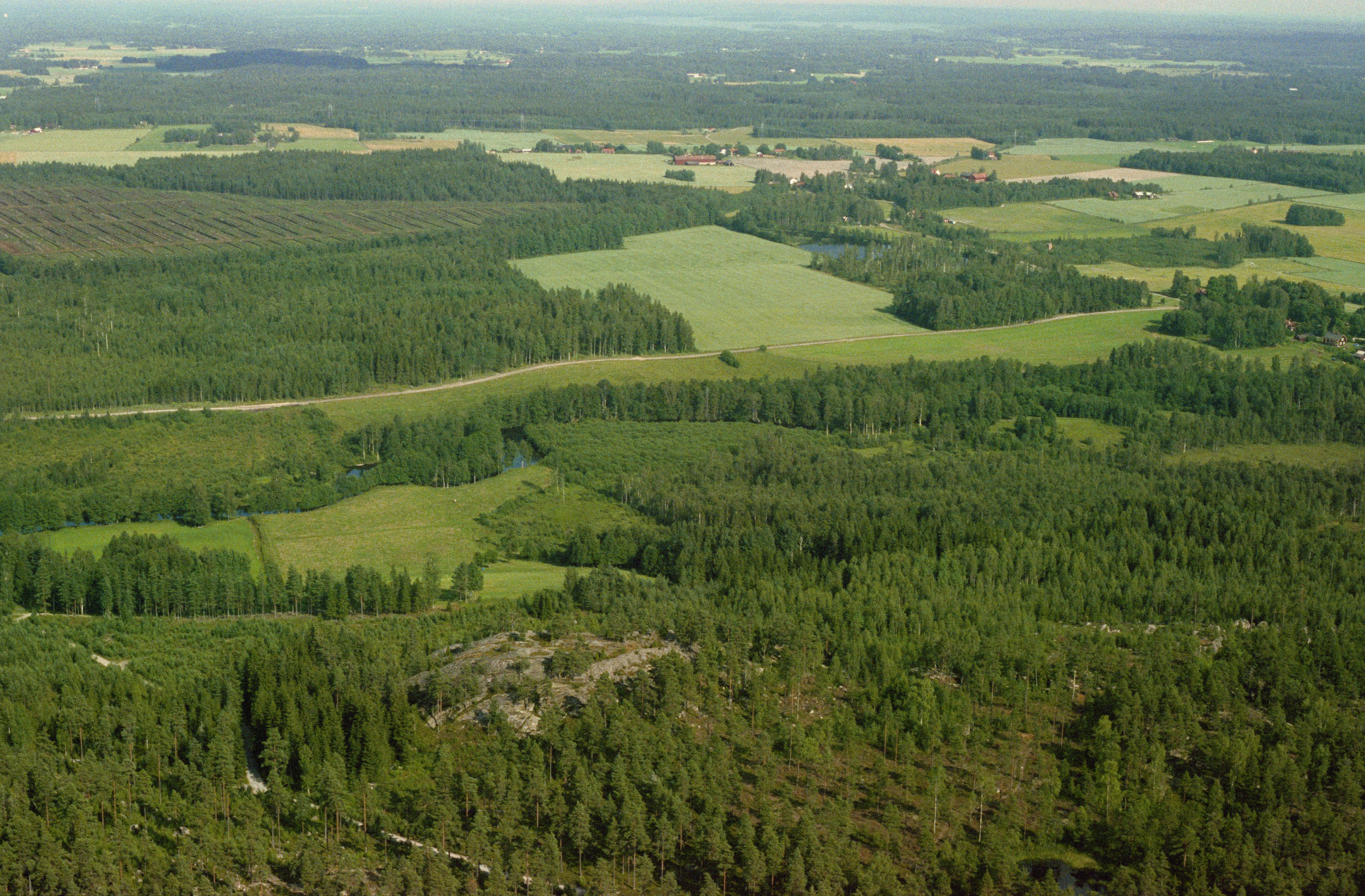 Beskrivning: Järleåns dalgång. Ån längs bildens mitt markerar gränsen mellan socknen Nora (i bildens nedre del) och Ervall (i bildens övre del). I bildens nedre del fornborgen Tistaborg RAÄnr Nora 84:1. Bilden är tagen mot (väderstreck): OSO