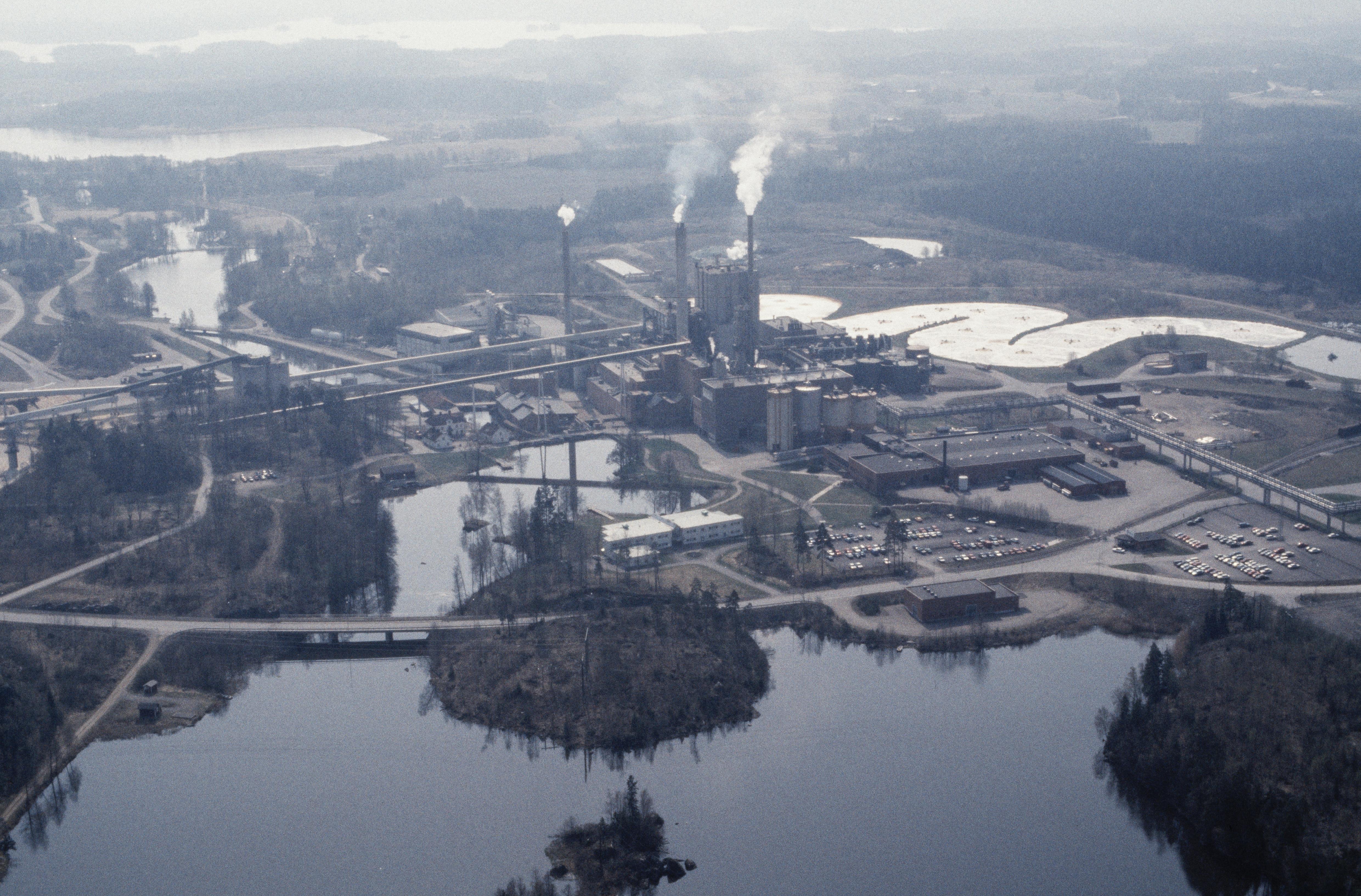 Beskrivning: Frövifors pappersbruk i Fröviåns dalgång. Frövifors herrgård till vänster om bildens mitt. Reningsbassäng till höger över bildens mitt. I området fornminnen träindustri RAÄnr Näsby 123, hammarområde Näsby 121, kvarn Näsby 122 m.fl. Bilden är tagen mot (väderstreck): S