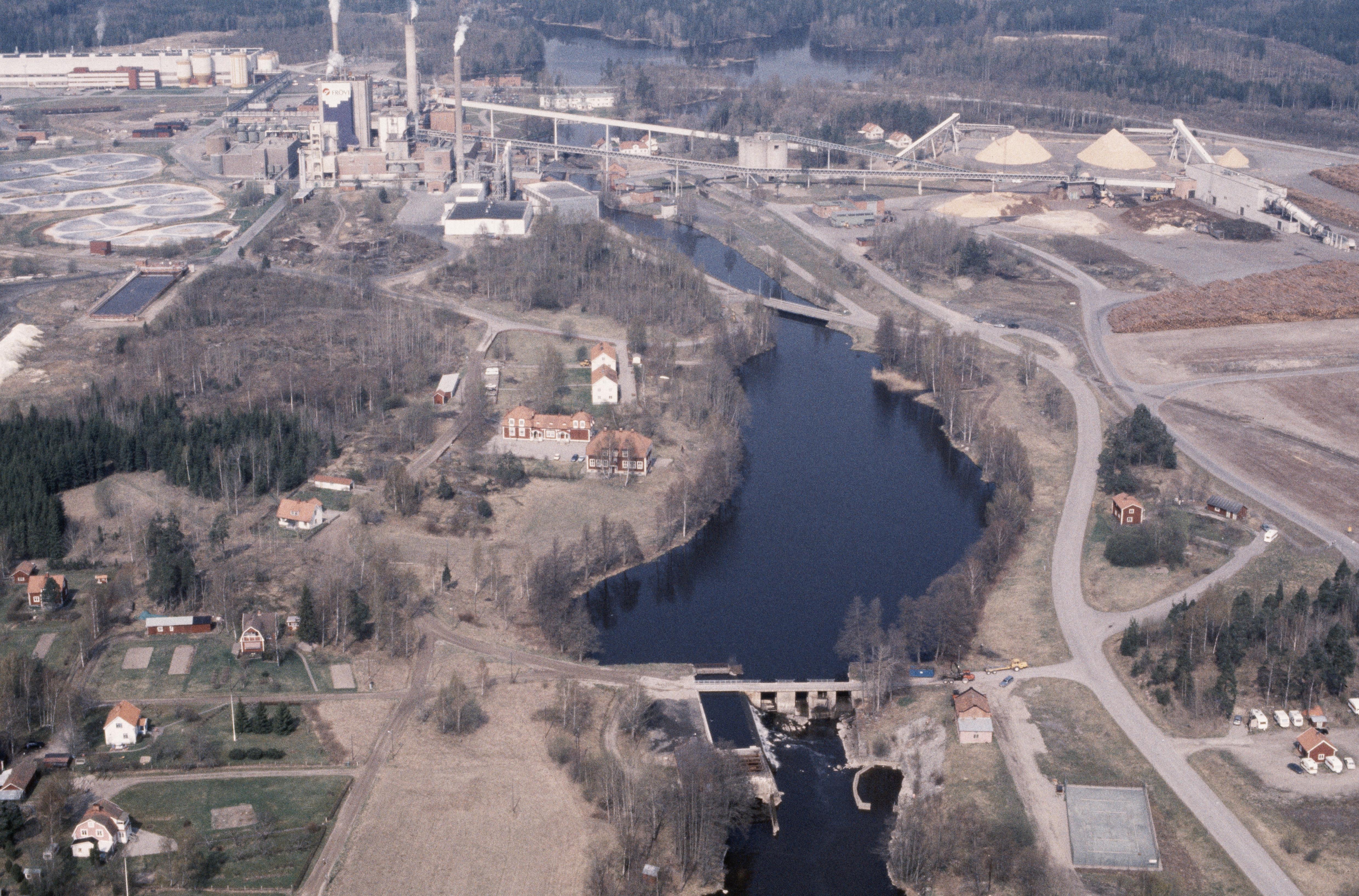 Beskrivning: Frövifors pappersbruk i Fröviåns dalgång. I området fornminnen träindustri RAÄnr Näsby 123, hammarområde Näsby 121, kvarn Näsby 122 m.fl. Bilden är tagen mot (väderstreck): NNV