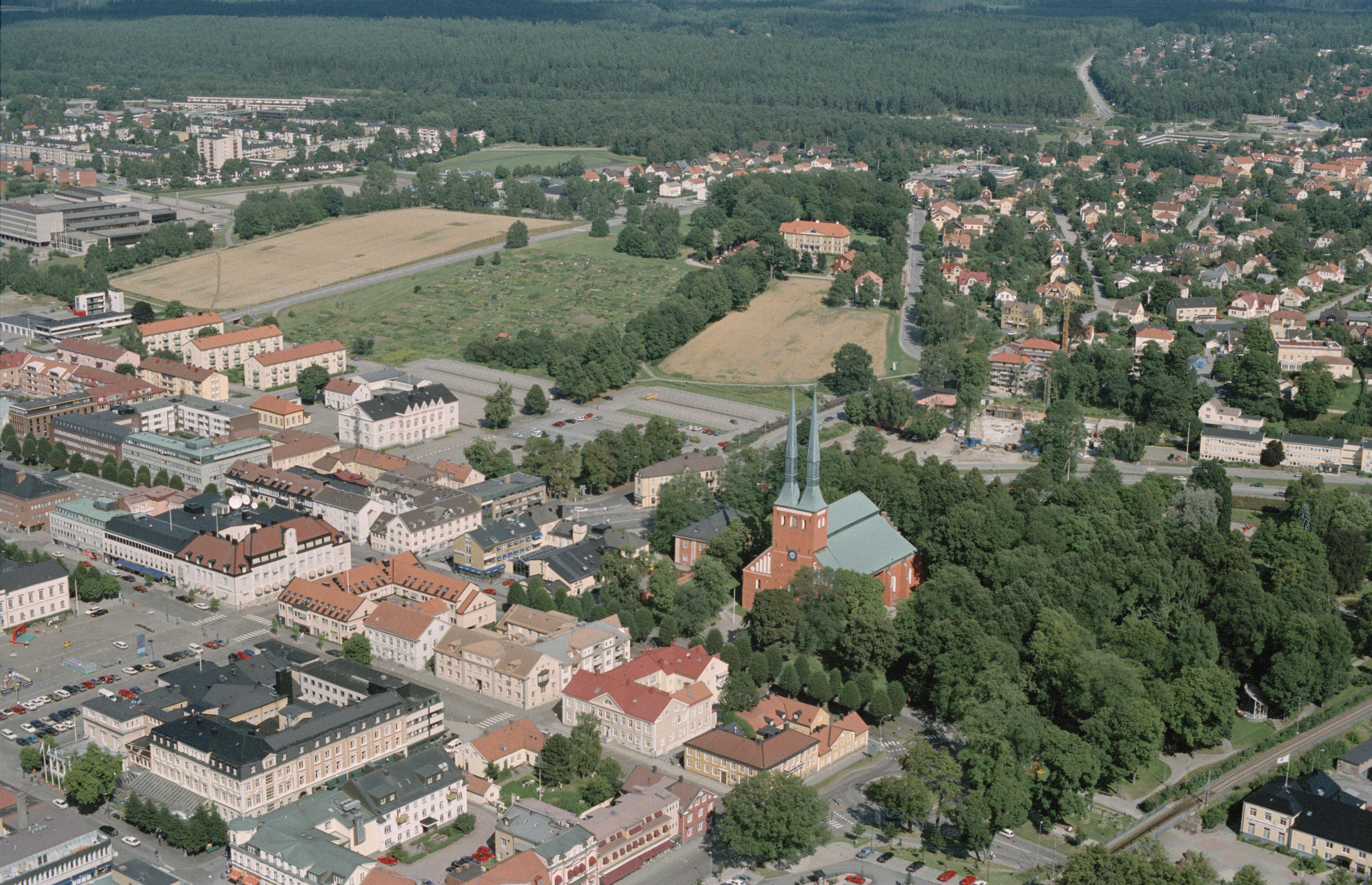Beskrivning: Växjö stad. Växjö domkyrka vid bildens mitt. Bilden är tagen mot (väderstreck): NO