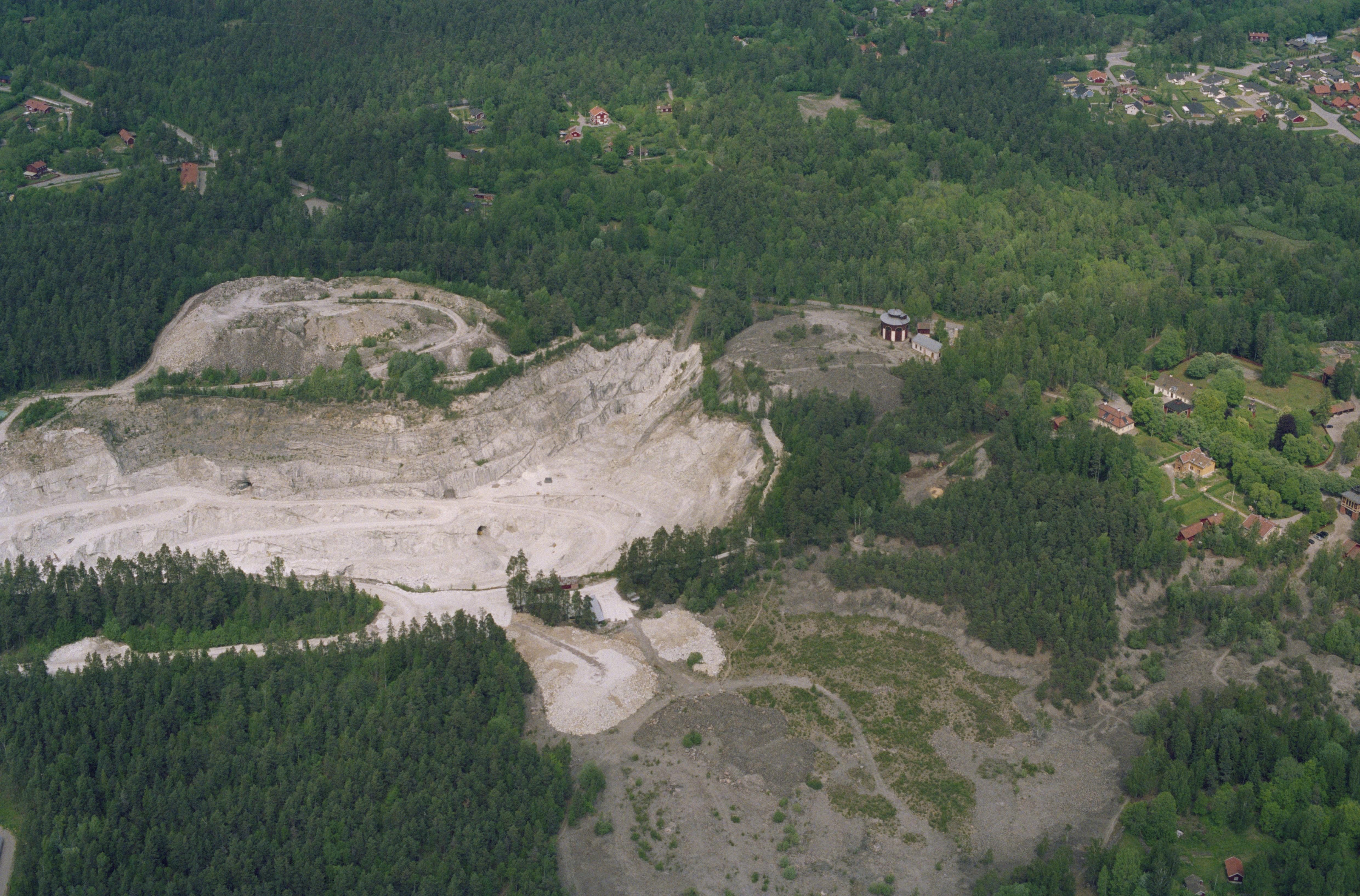 Beskrivning: Sala gruva i sydvästra delen av Sala stad; väster om Sala silvergruva. Till vänster dolomitmarmorgruvan Tistbrottet. Under bildens mitt gruvområde RAÄnr Sala stad 215:1-3 m.fl. Uppe till höger Sala stad. Bilden är tagen mot (väderstreck): N