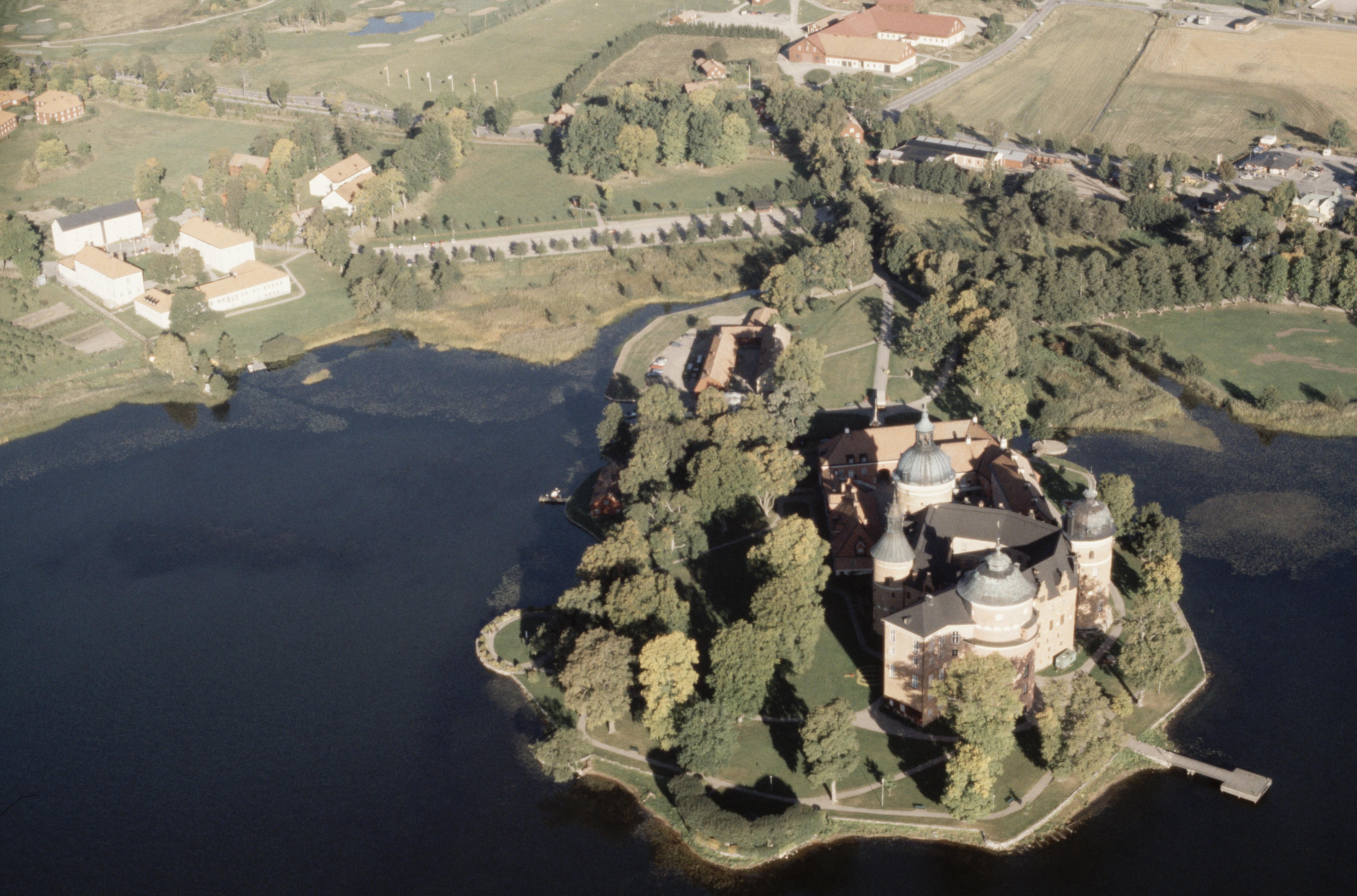 Beskrivning: Vid sockengränsen mellan Kärnbo och Mariefred (nere till höger). Kungsladugården och Gripsholms slott. Bilden är tagen mot (väderstreck): N