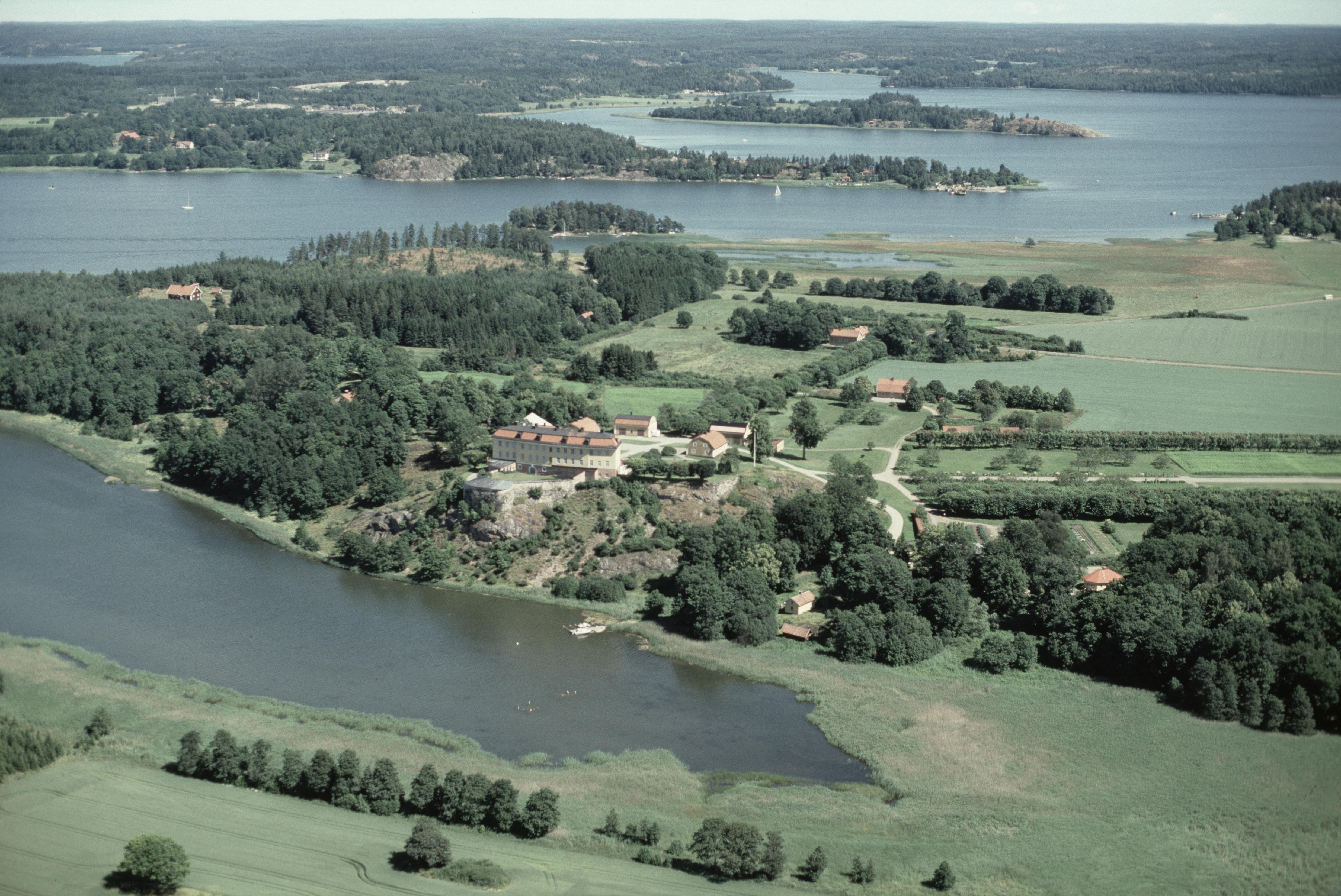 Beskrivning: Borgsundet till vänster markerar gränsen mellan socknen Mörkö och Ytterjärna (i bildens nedre del). Vid bildens mitt Hörningsholms slott RAÄnr Mörkö 66:1. I bildens övre del Skansholmen, Skanssundet och Grödinge socken. Bilden är tagen mot (väderstreck): ONO