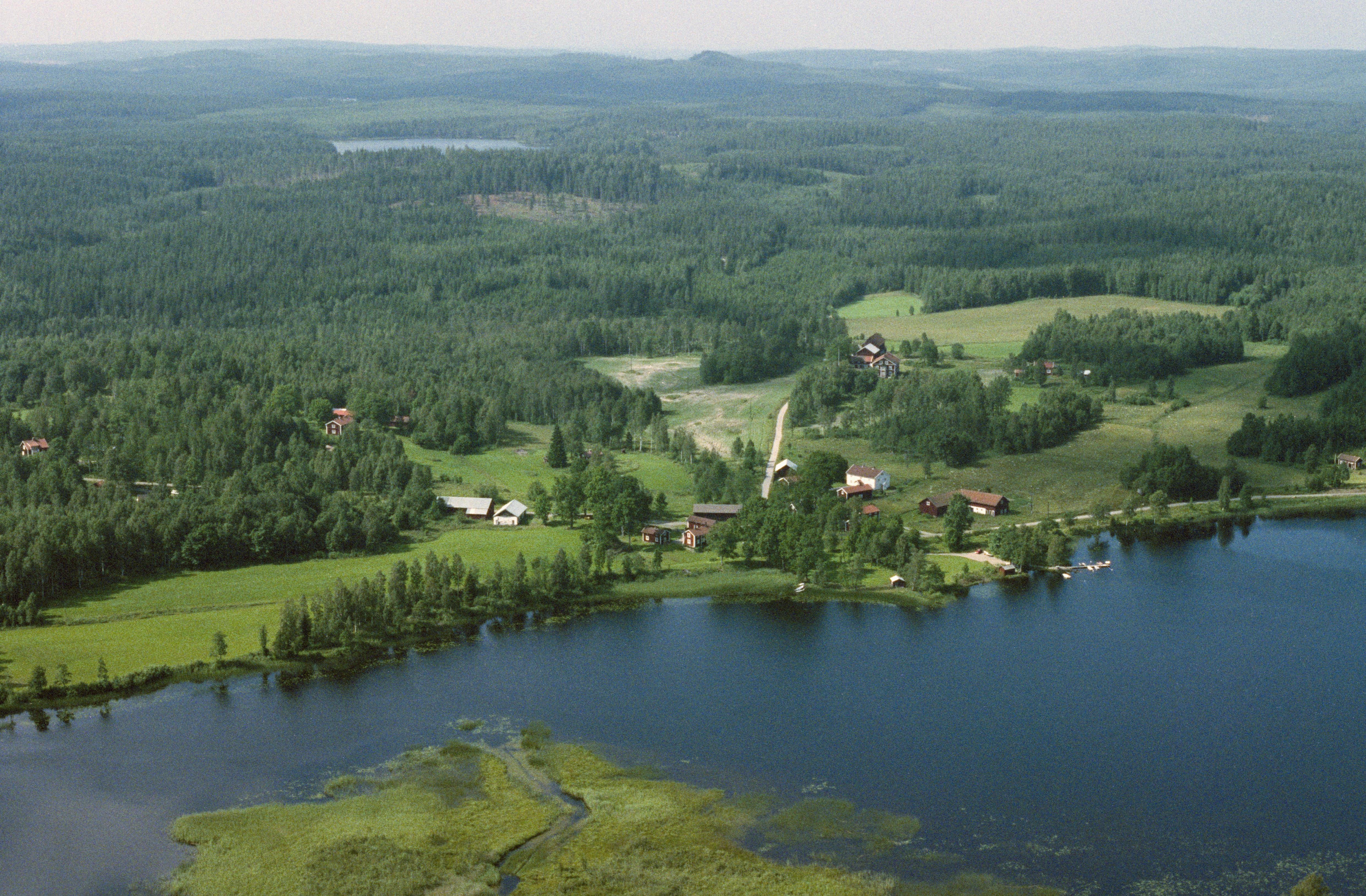 Beskrivning: Gamla Vikers bergmansby vid sjön Vikern. Hyttområde RAÄnr Viker 18:1 vid bildens mitt. Bilden är tagen mot (väderstreck): NV