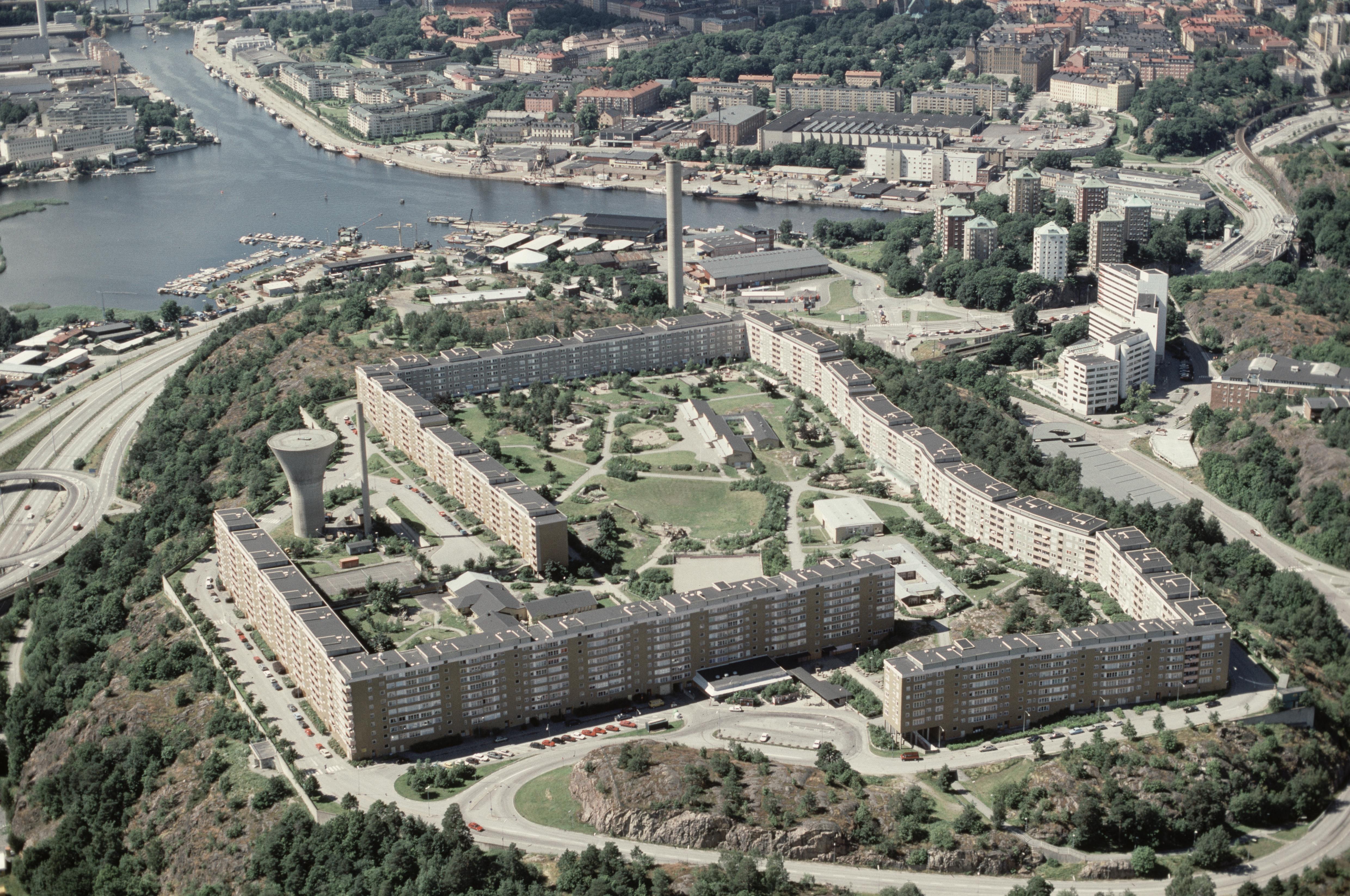 Beskrivning: Sicklaön vid gränsen mot Stockholms stad. Vid bildens mitt Henriksdalsberget med bostadsområde och fornborg RAÄnr Nacka 100:1. I bildens övre del Hammarby sjö i socknet Stockholm. Bilden är tagen mot (väderstreck): VSV