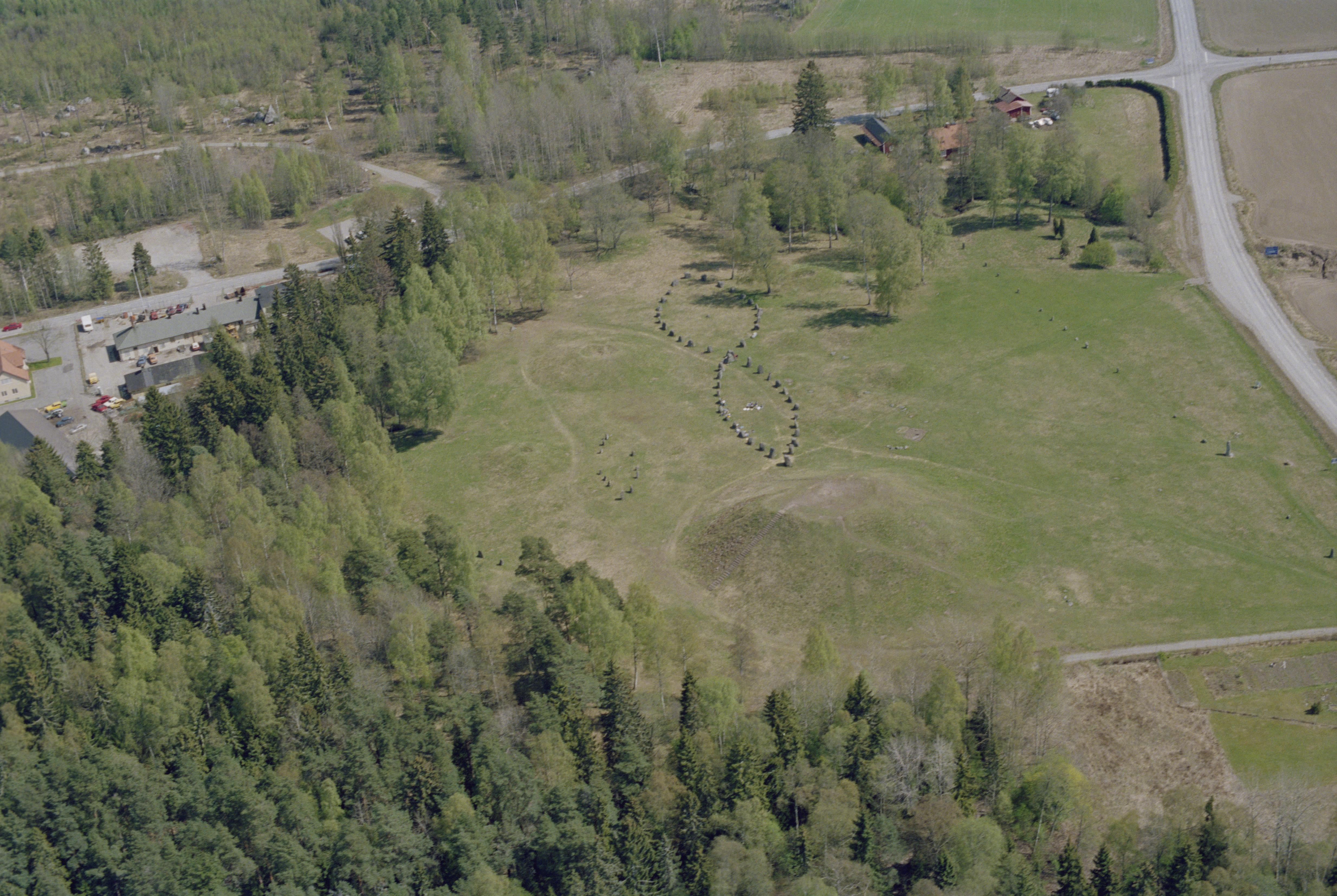 Beskrivning: Fornlämningsområdet Anundshög RAÄnr Västerås 431:1 vid Badelundaåsen i Badelunda. I området finns storhög, skeppssättningar, väglämningar och runsten m.m. Bilden är tagen mot (väderstreck): Ö