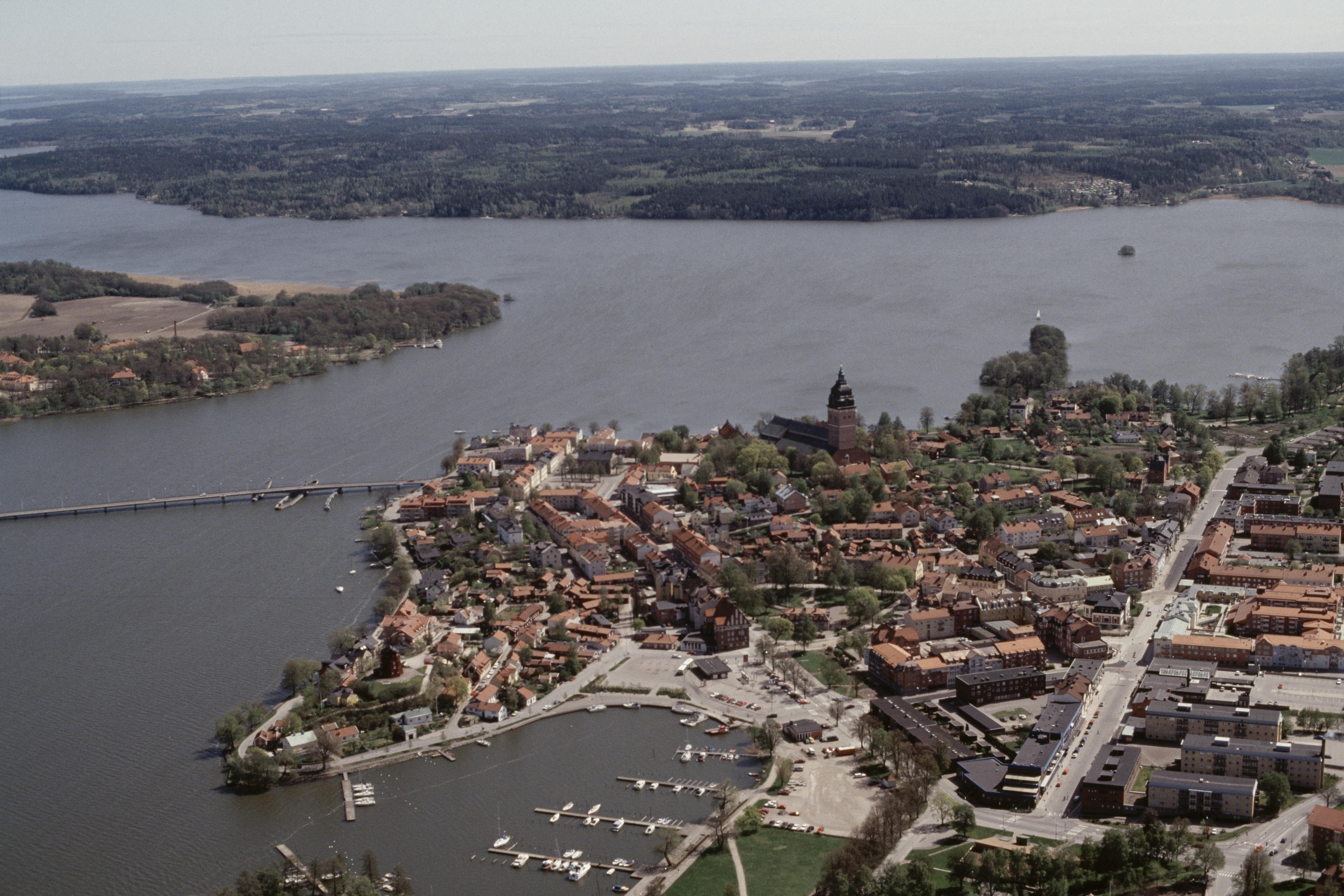 Beskrivning: Strängnäs stad. Strängnäs domkyrka vid bildens mitt. Bilden är tagen mot (väderstreck): NO