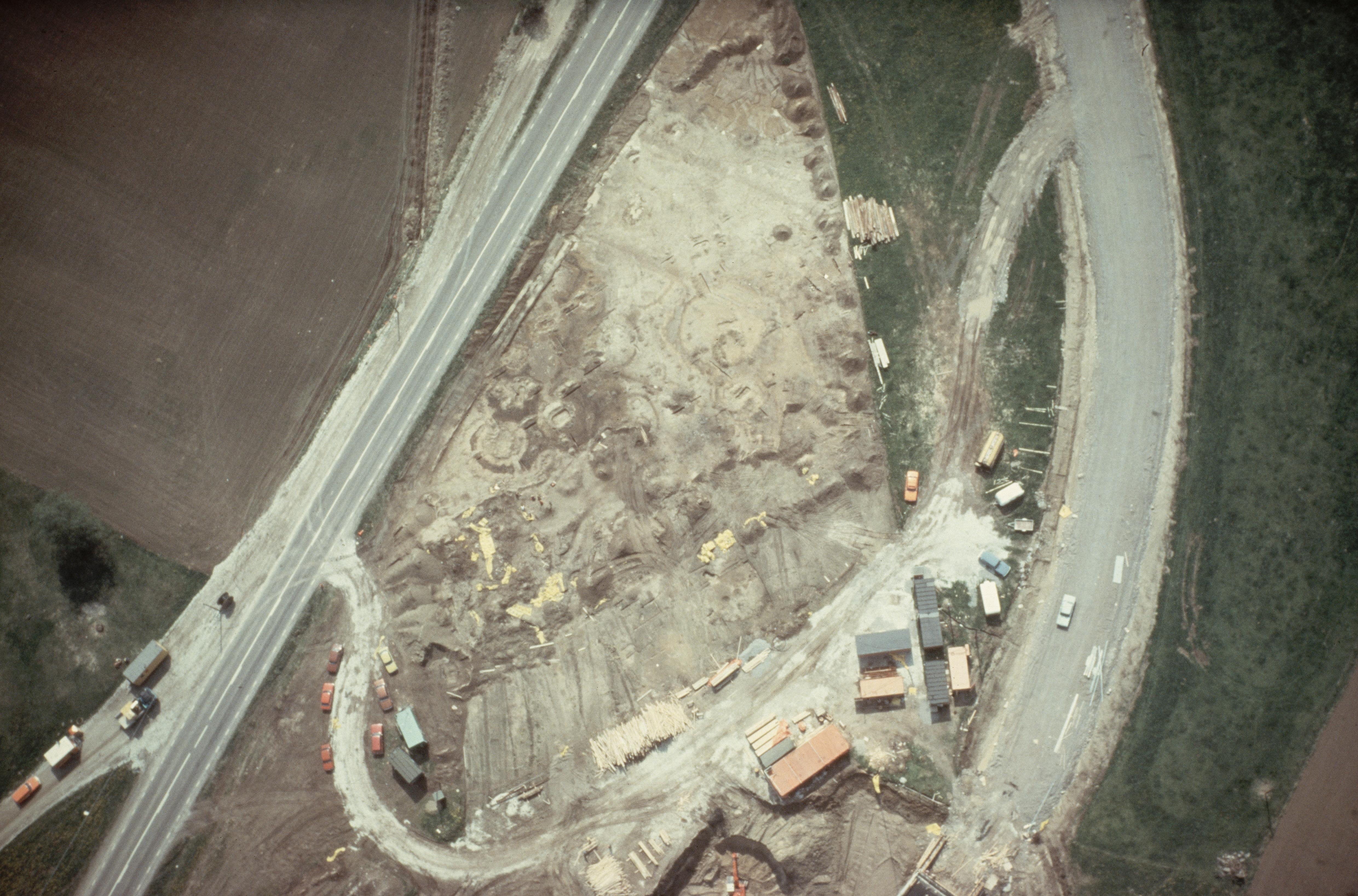 Beskrivning: Arkeologisk undersökning innan bygging av väg E4. Grav- och boplatsområde RAÄnr Västerljung 208:1. Bilden är tagen mot (väderstreck): Ö