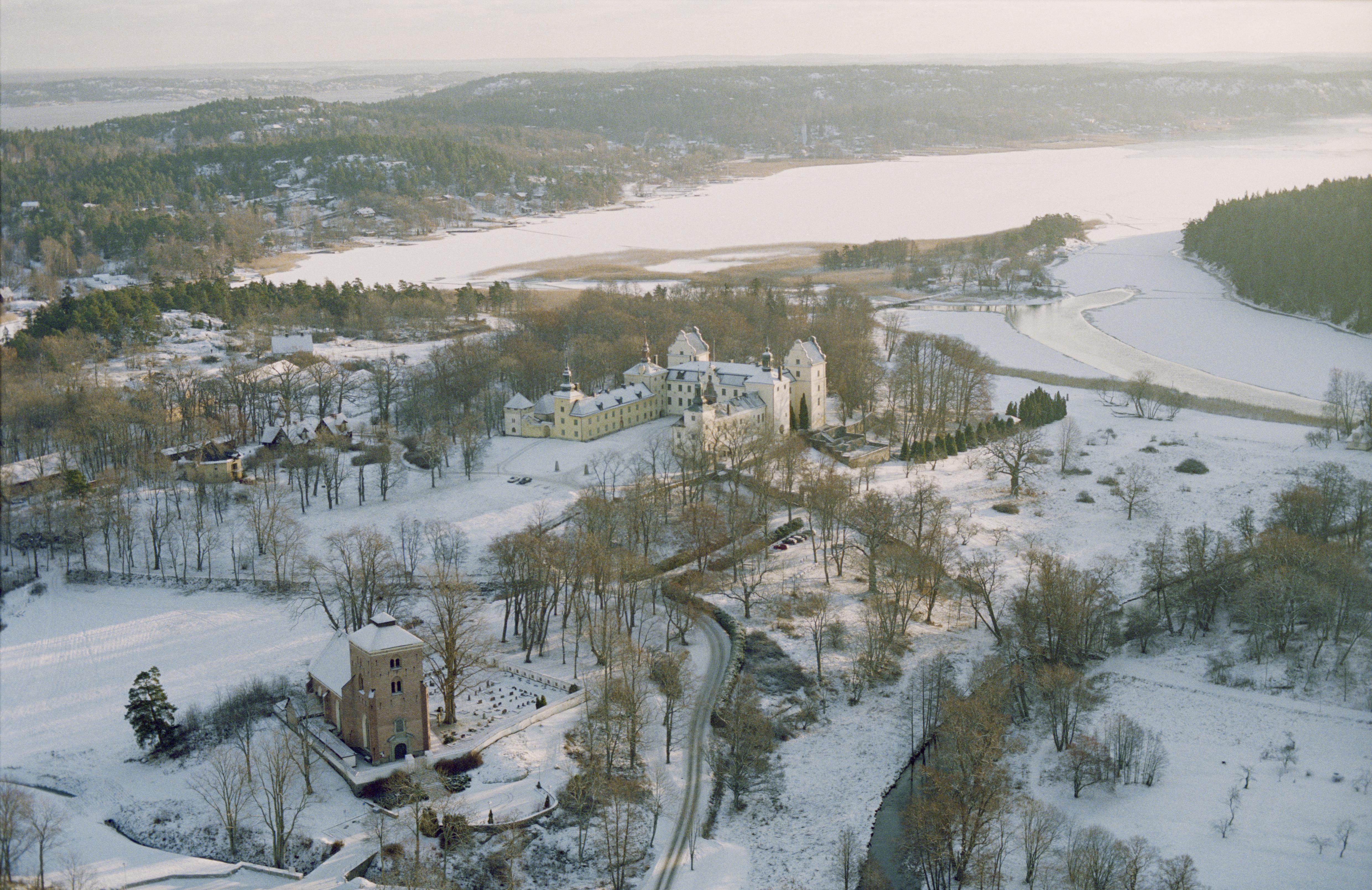 Beskrivning: Tyresö kyrka och Tyresö slott (byggnadsminne RAÄnr Tyresö 37:1) i bildens övre del. Erstaviken uppe i bildens vänstra hörn. Bilden är tagen mot (väderstreck): Ö