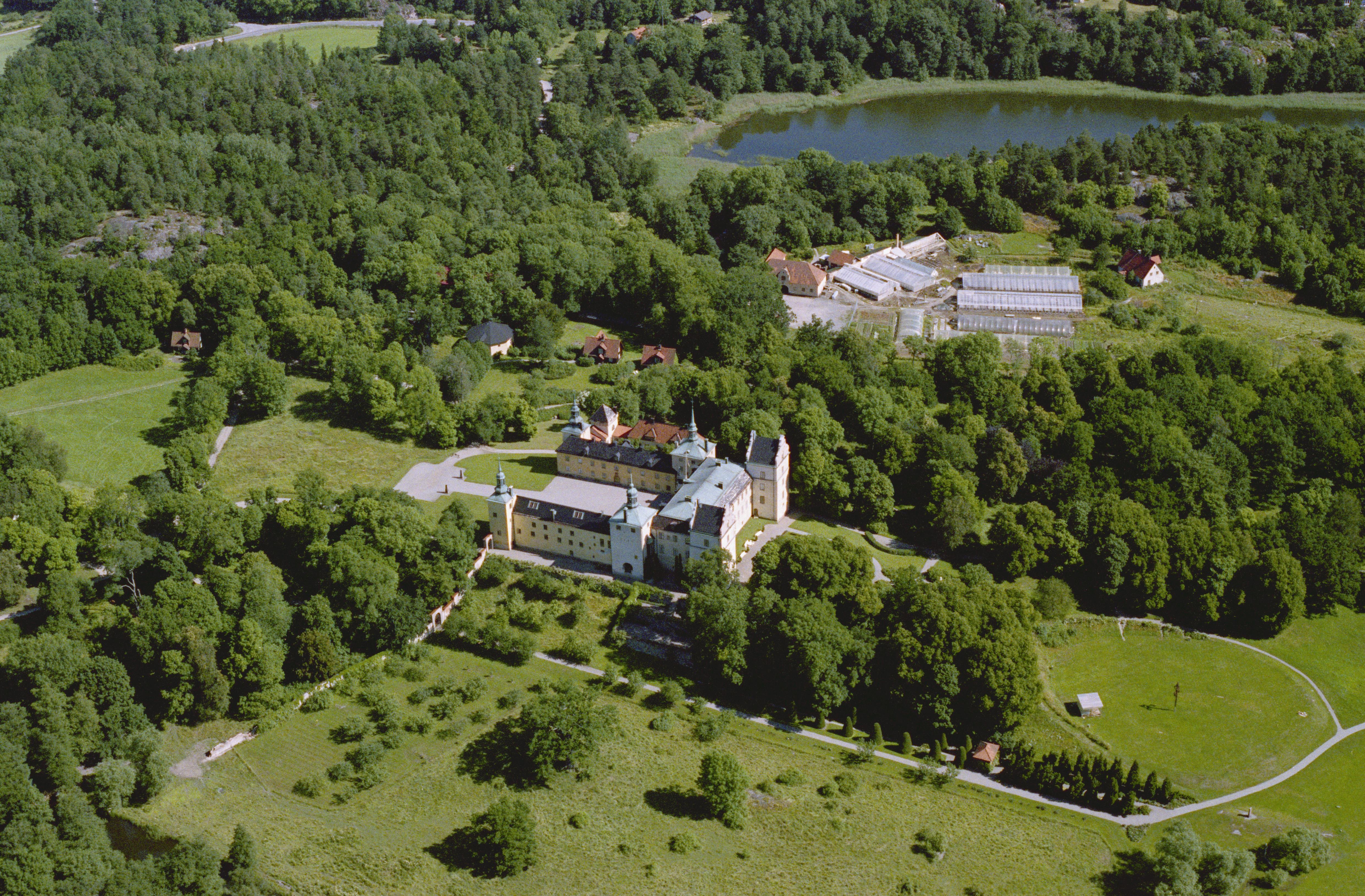 Beskrivning: Tyresö slott (byggnadsminne RAÄnr Tyresö 37:1) vid Kalvfjärden. Bilden är tagen mot (väderstreck): NNO