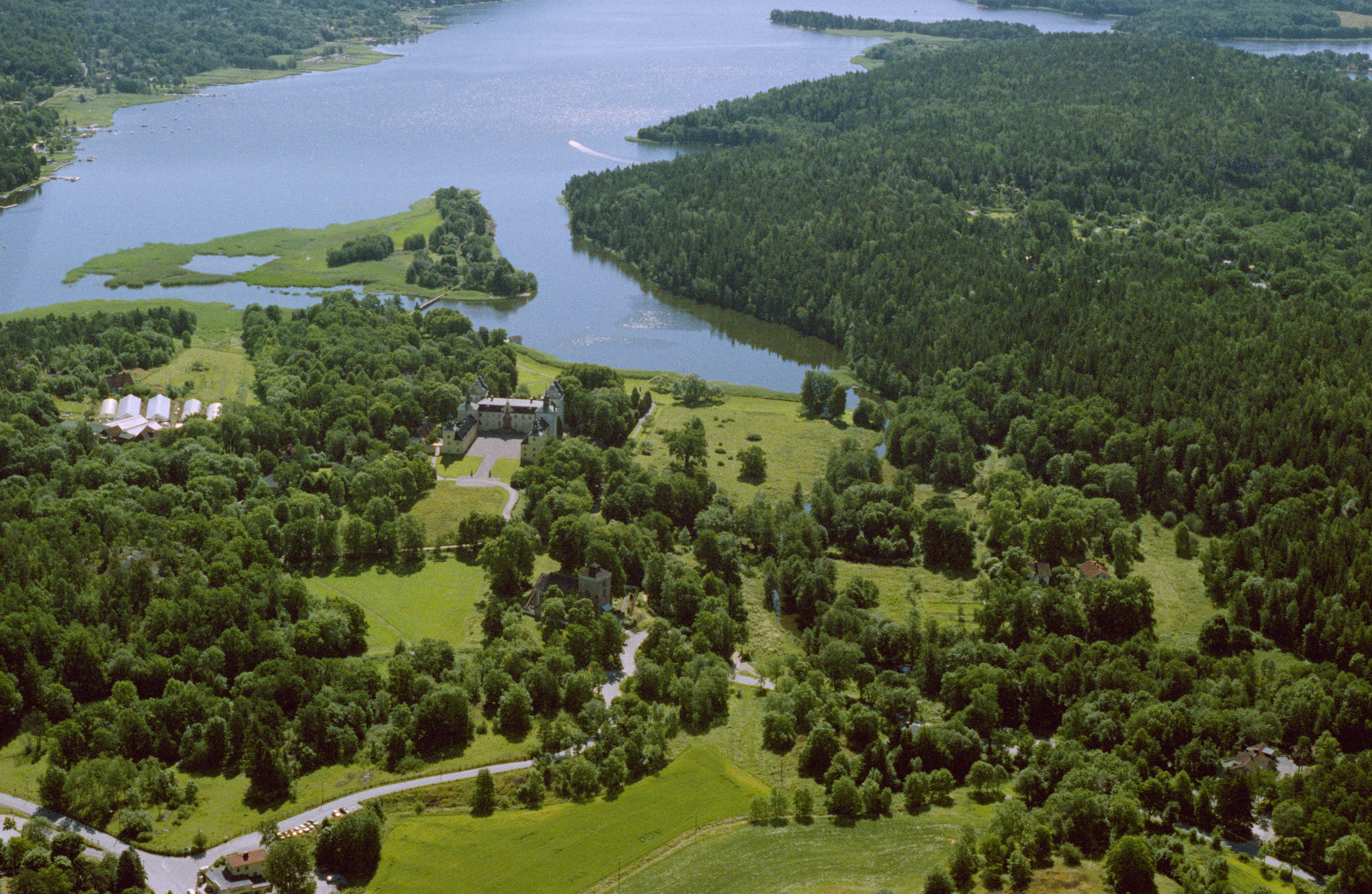 Beskrivning: Tyresö kyrka och Tyresö slott (byggnadsminne RAÄnr Tyresö 37:1) vid Kalvfjärden. Bilden är tagen mot (väderstreck): SO