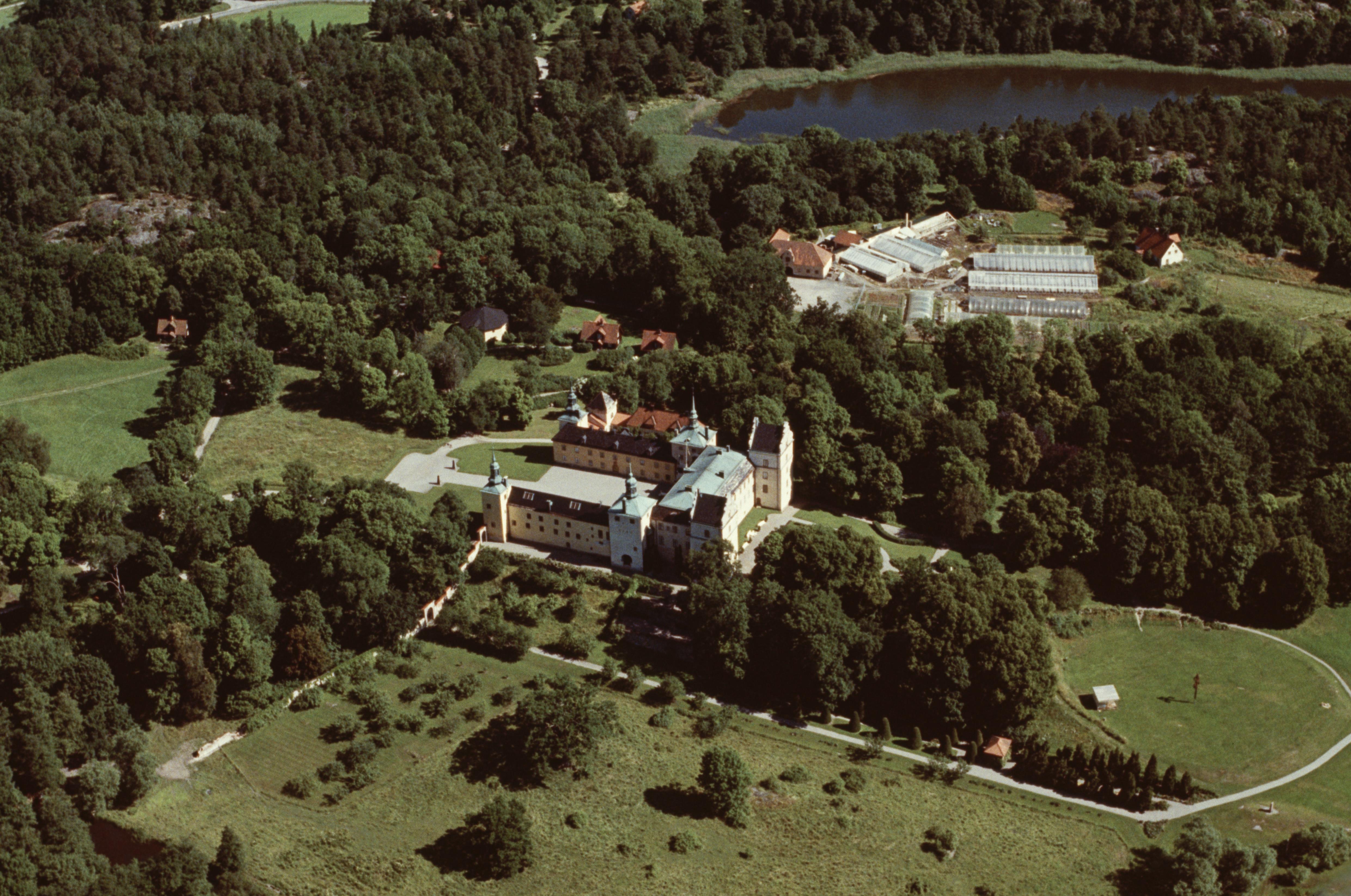 Beskrivning: Tyresö slott (byggnadsminne RAÄnr Tyresö 37:1) vid Kalvfjärden. Bilden är tagen mot (väderstreck): NO