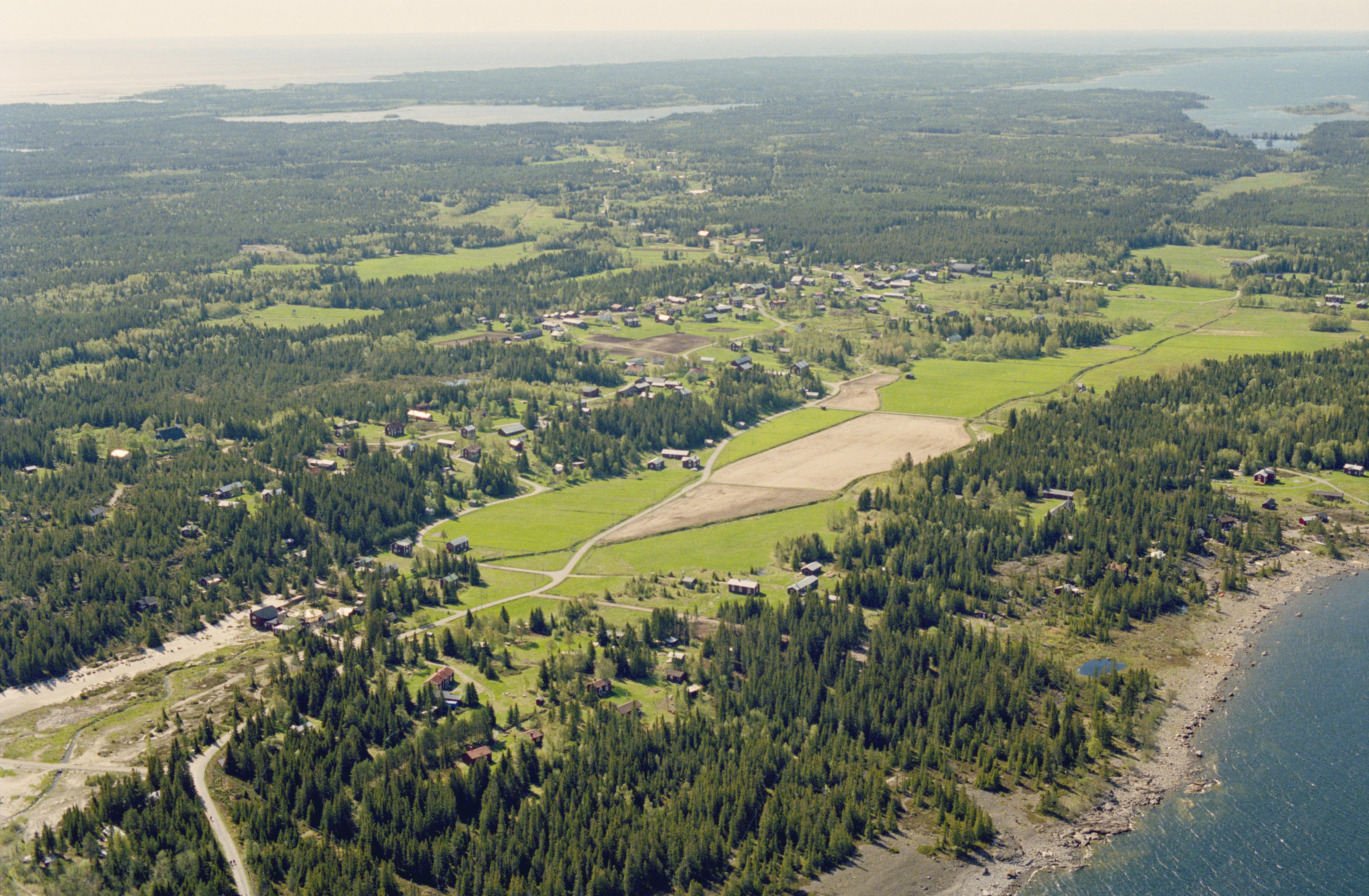 Beskrivning: Holmöns nordvästra del. Holmöns kyrkby med lämningar efter fiskeläge RAÄnr Holmön 11:1. Holmön ingår i ögruppen Holmöarna i sundet Norra Kvarken. Bilden är tagen mot (väderstreck): SO