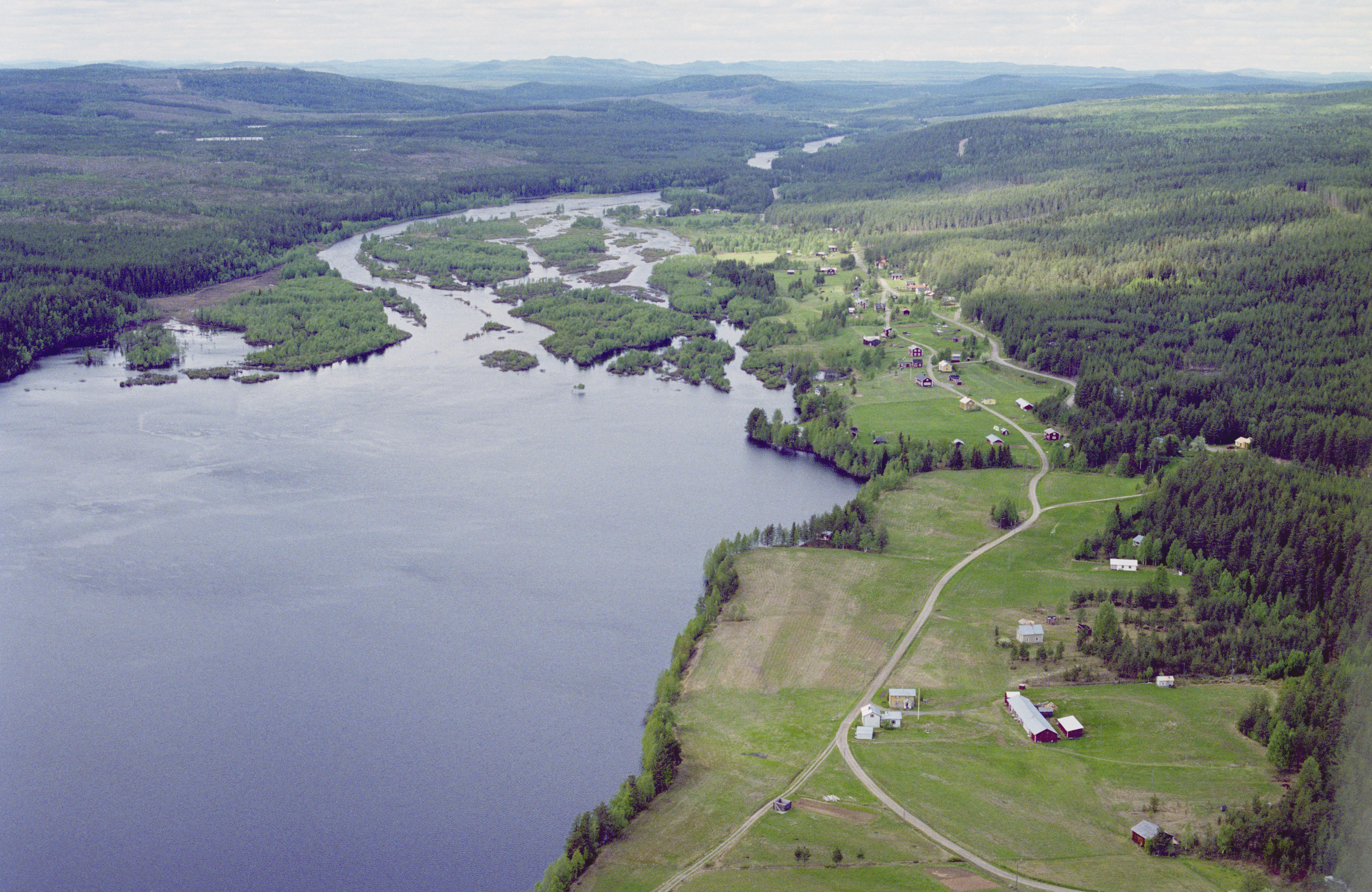 Beskrivning: Byskeälven vid sjön och byn Åselet. I skogen till i bildens högra kant fångstgrop RAÄnr Jörn 239:1, 272:1-3 m.fl. Bilden är tagen mot (väderstreck): NV