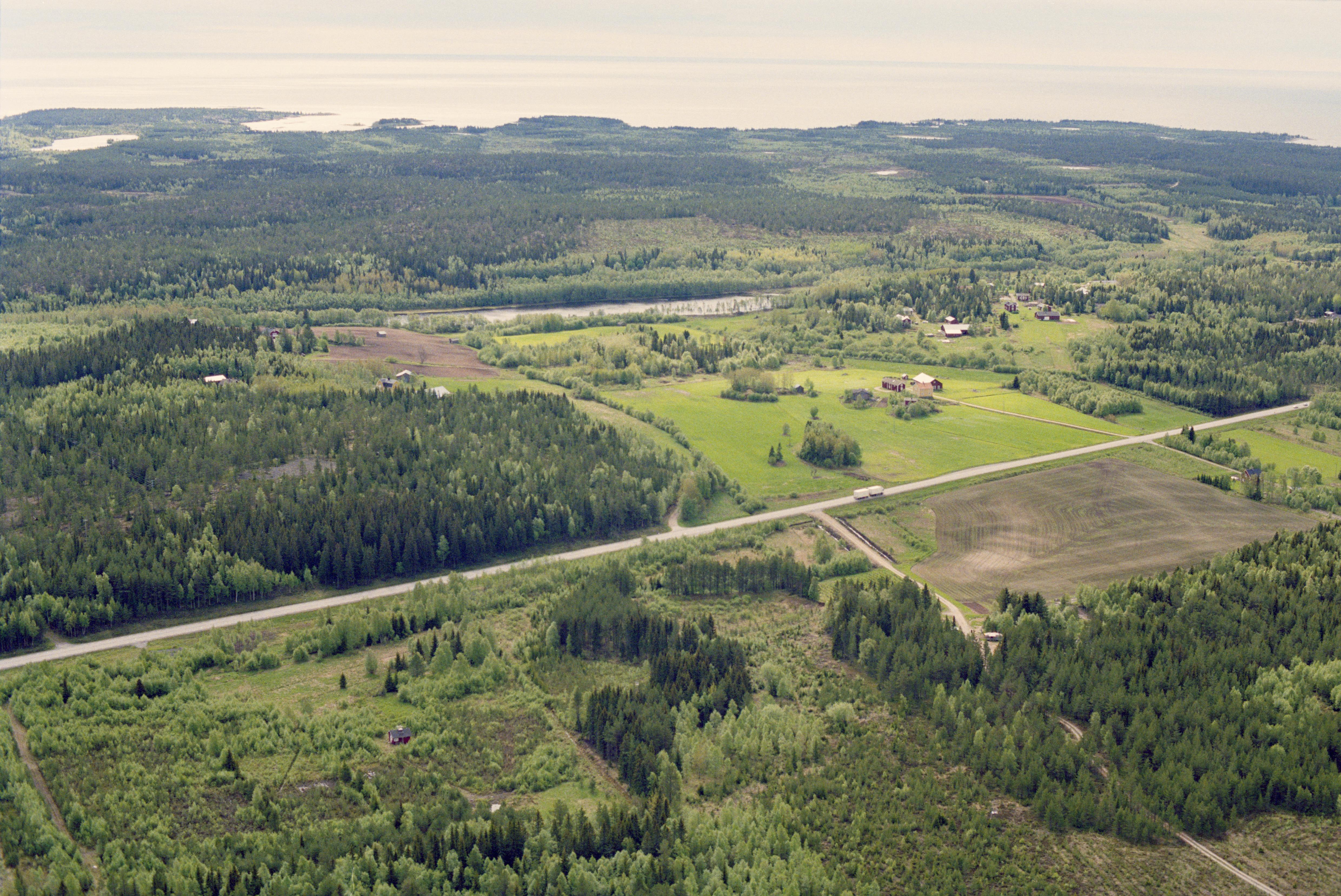 Beskrivning: Lövsele by i Nyåkersbäckens dalgång. Till vänster Slumpberget med gravrösen RAÄnr Lövånger 35:1. Över bildens mitt husgrund RAÄnr Lövånger 348:1 vid sjön Selet. Bilden är tagen mot (väderstreck): SO