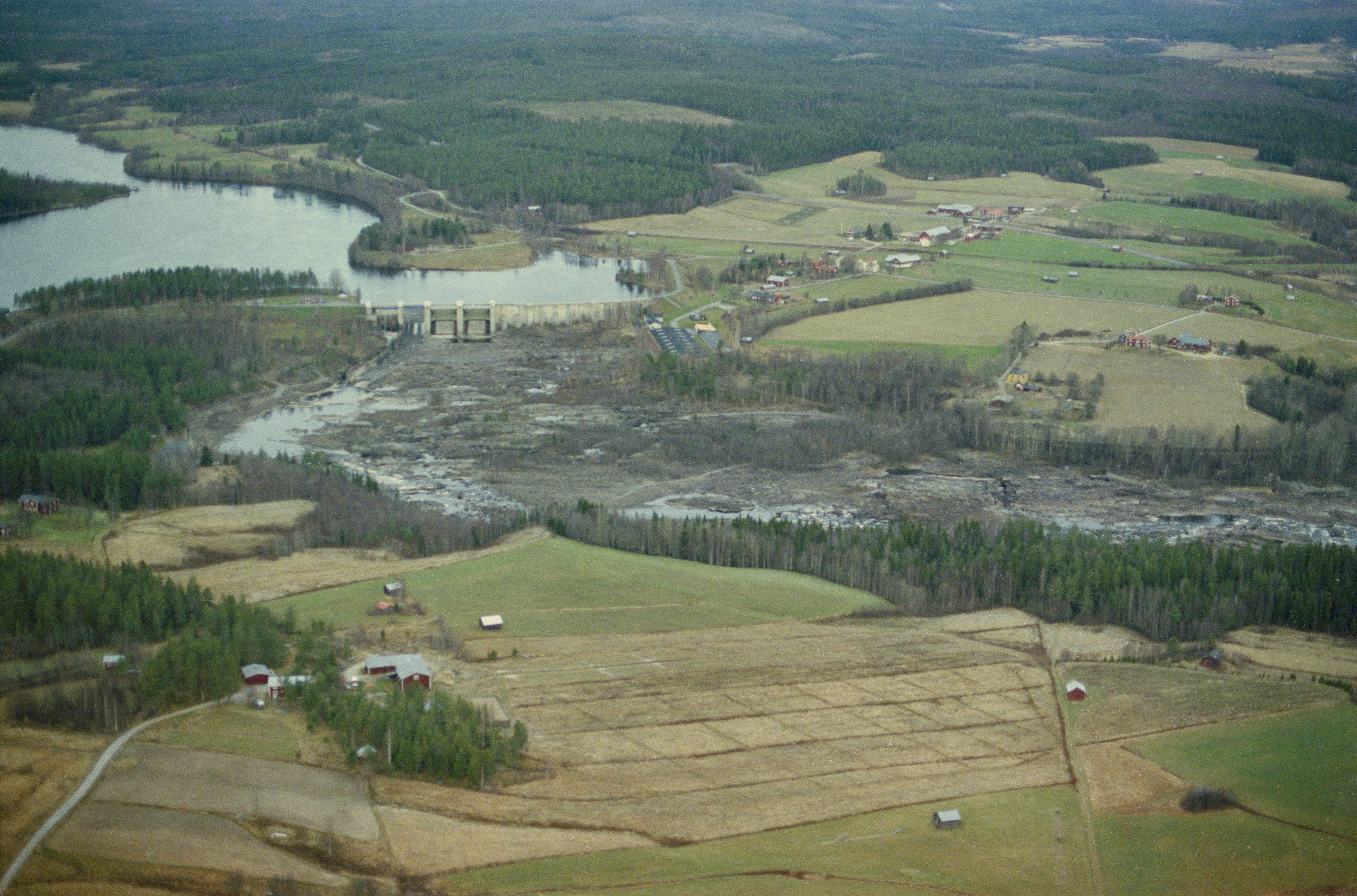 Beskrivning: Norrforsen och Stornorrfors kraftverk mellan byarna Sörforsen och Norrforsen i Umeälvens dalgång. Vid älvkanten över bildens mitt hällristningsområdet Truthällorna RAÄnr Umeå stad 365:1. Norrfors by i bildens övre del. Bilden är tagen mot (väderstreck): NV