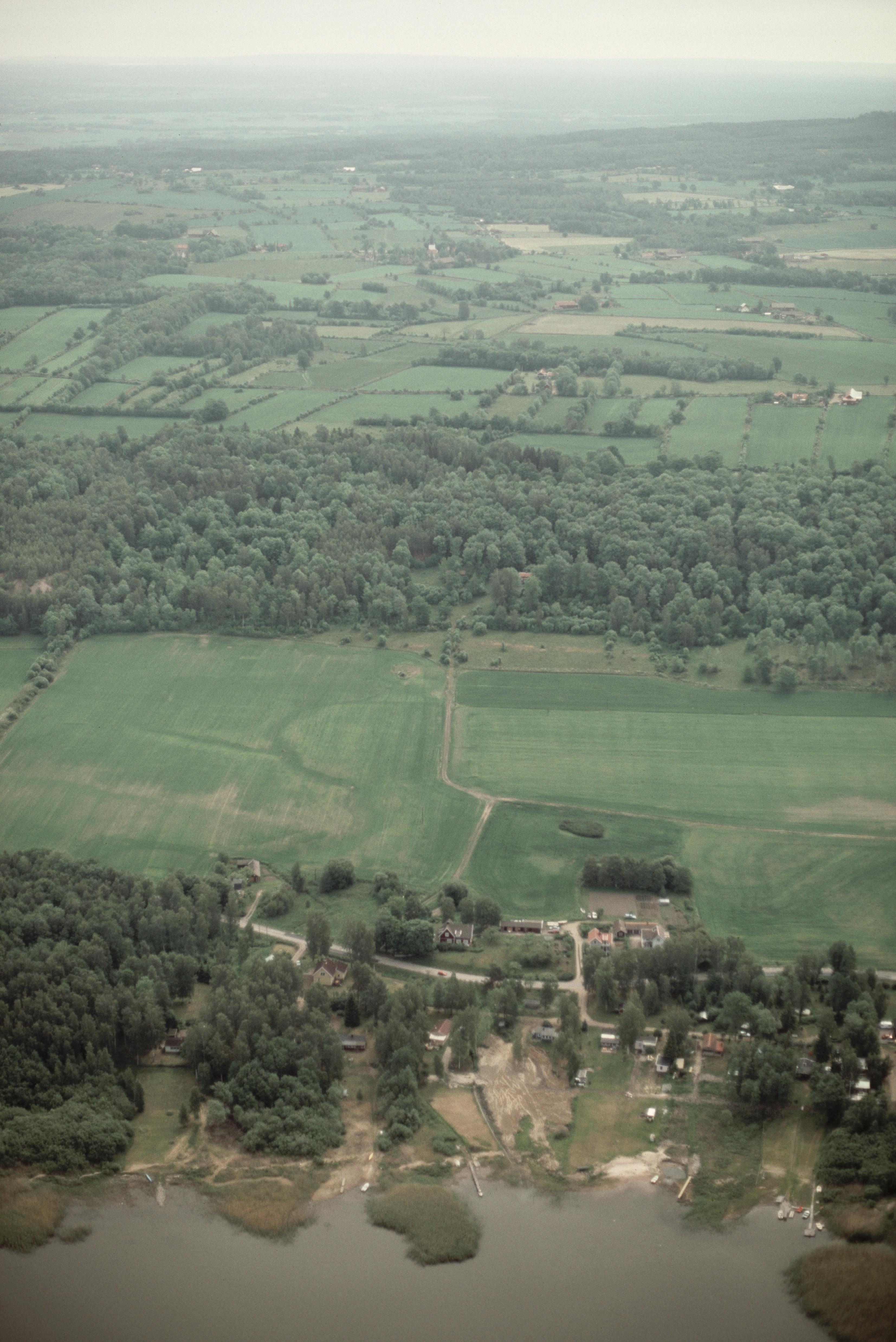 Beskrivning: Sjöhaga vid sjön Lången, Bytomt RAÄnr Berg 116:1 och industrilämningar Berg 61:2 m.fl. i bildens nedre del. I bildens övre del Bergs kyrka. Bilden är tagen mot (väderstreck): ONO