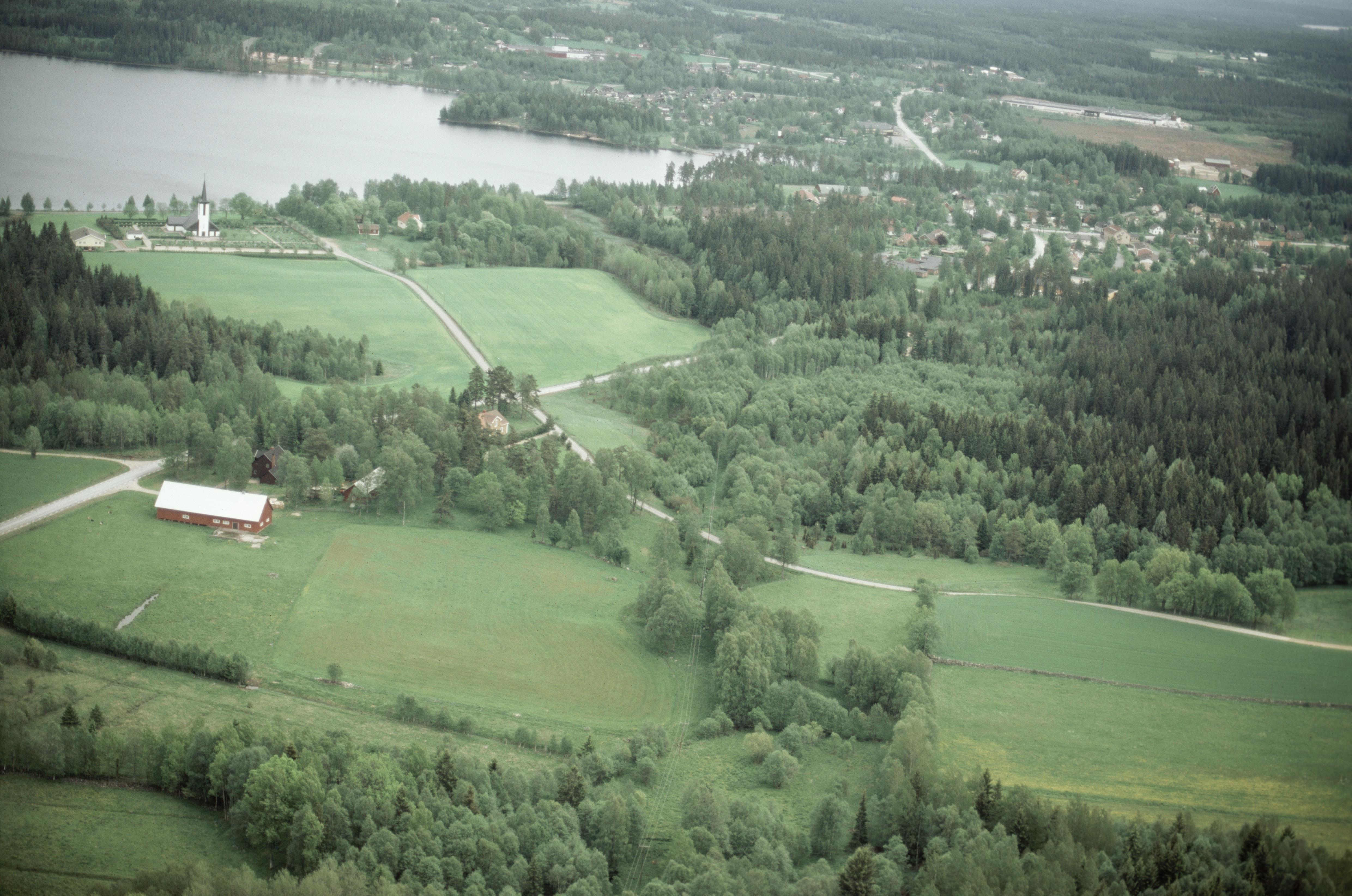 Beskrivning: Dalstorps kyrkby och tätort vid Dalstorpasjön. Dalstorps kyrka till vänster i bildens övre del. Bilden är tagen mot (väderstreck): Ö