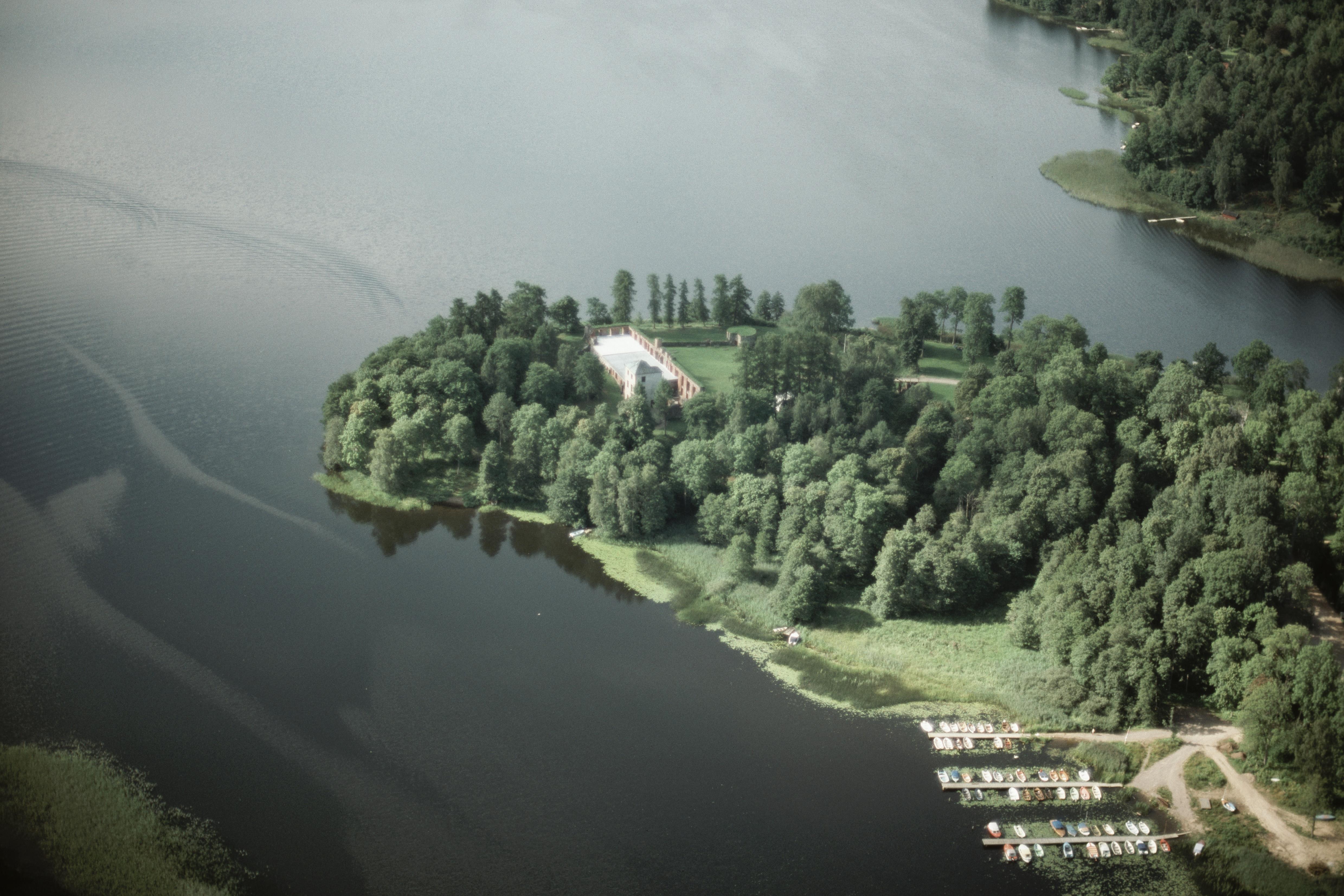 Beskrivning: Gräfsnäs slottsruin RAÄnr Erska 21:1-2 vid Gräfsnäsviken. Bilden är tagen mot (väderstreck): SV