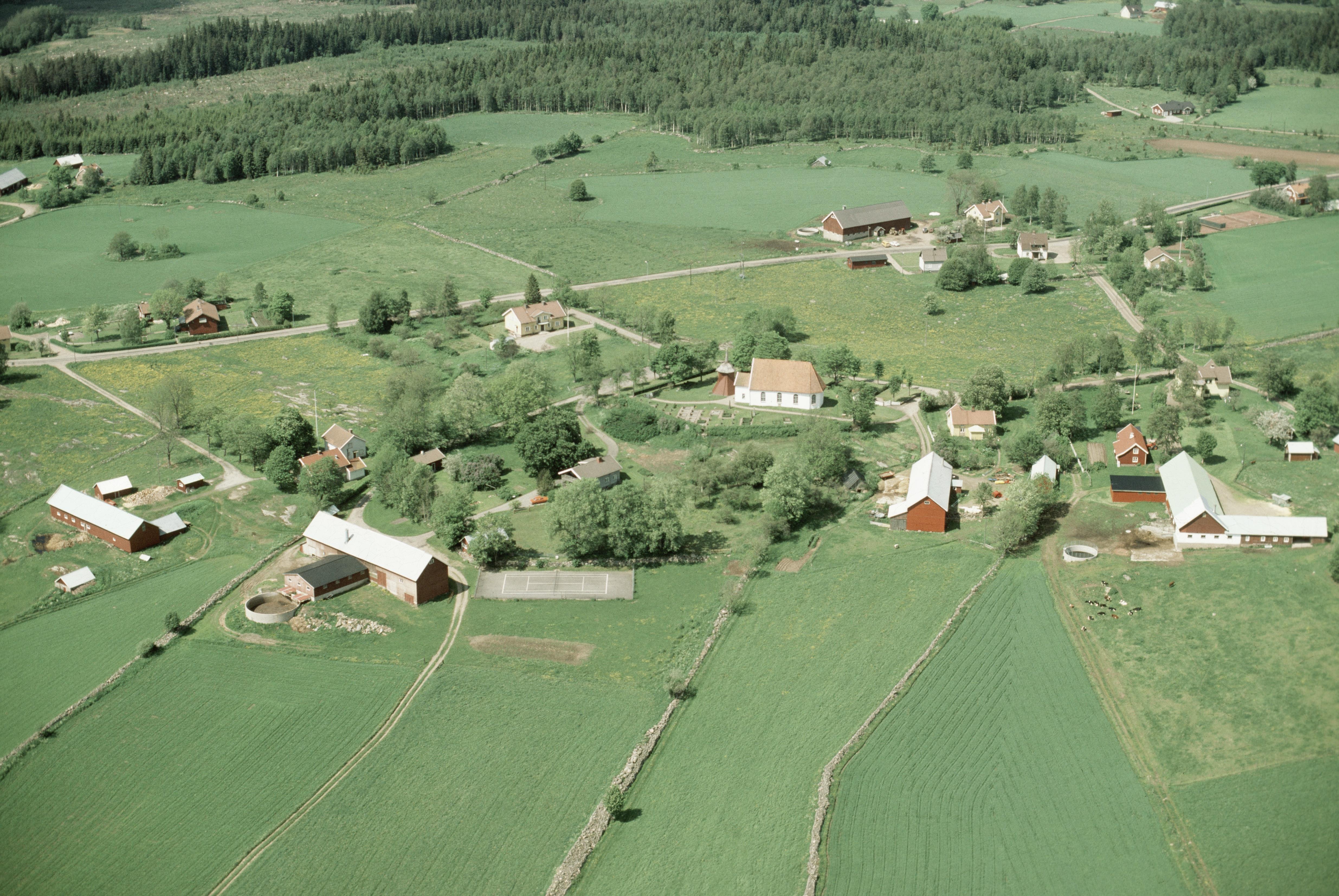Beskrivning: Härna kyrka och kyrkby. Bilden är tagen mot (väderstreck): N