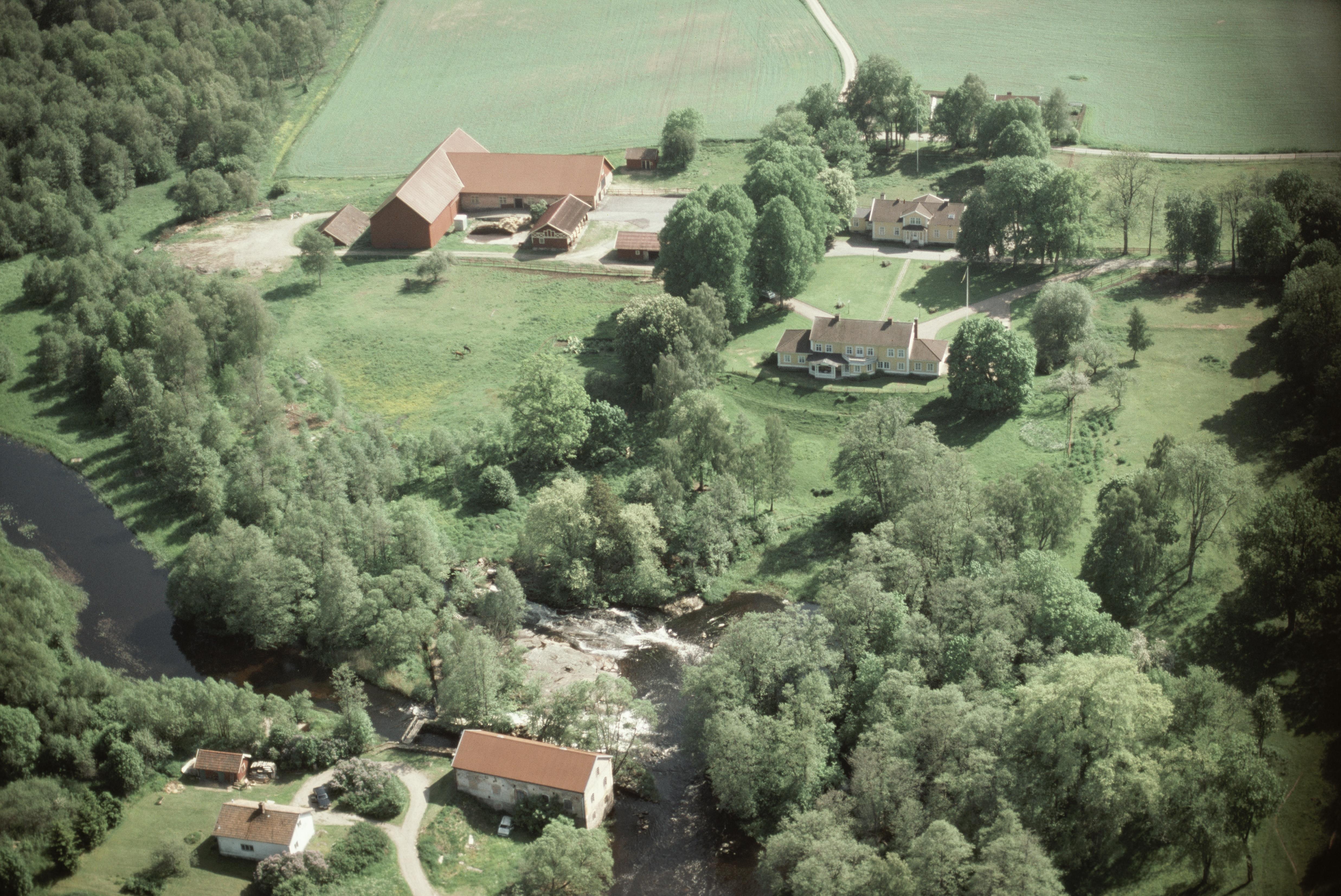 Beskrivning: Säveån markerar gränsen mellan socknen Kullings-Skövde och Siene (i bildens övre del). Wårgårda herrgård. I bildens nedre del kvarn RAÄnr Siene 228. Bilden är tagen mot (väderstreck): S
