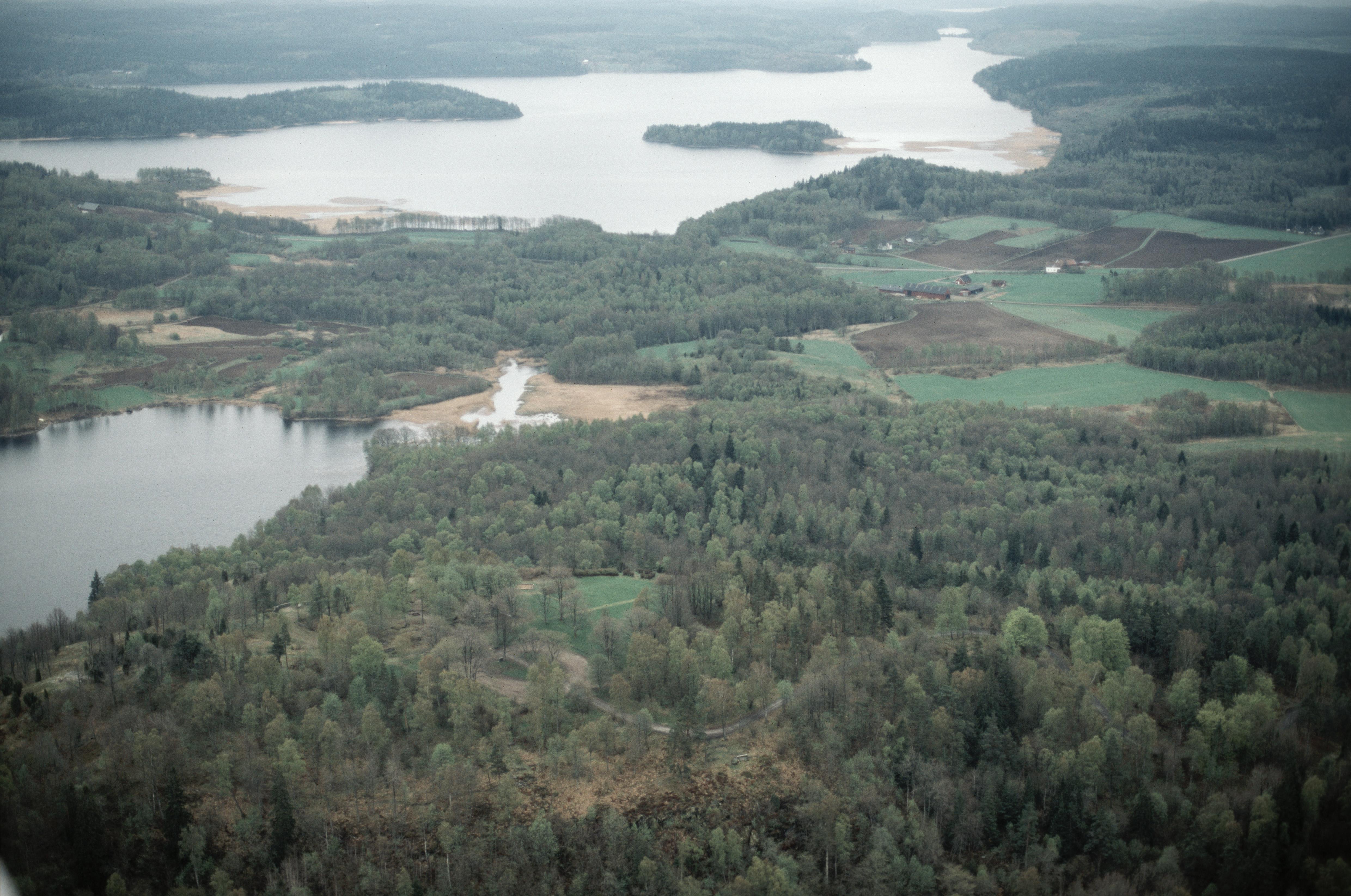 Beskrivning: Hyltenäs slottsruin / Seatons kulle RAÄnr Öxnevalla 32:1 på en udde mellan Västra och Östra Öresjön. Bilden är tagen mot (väderstreck): S