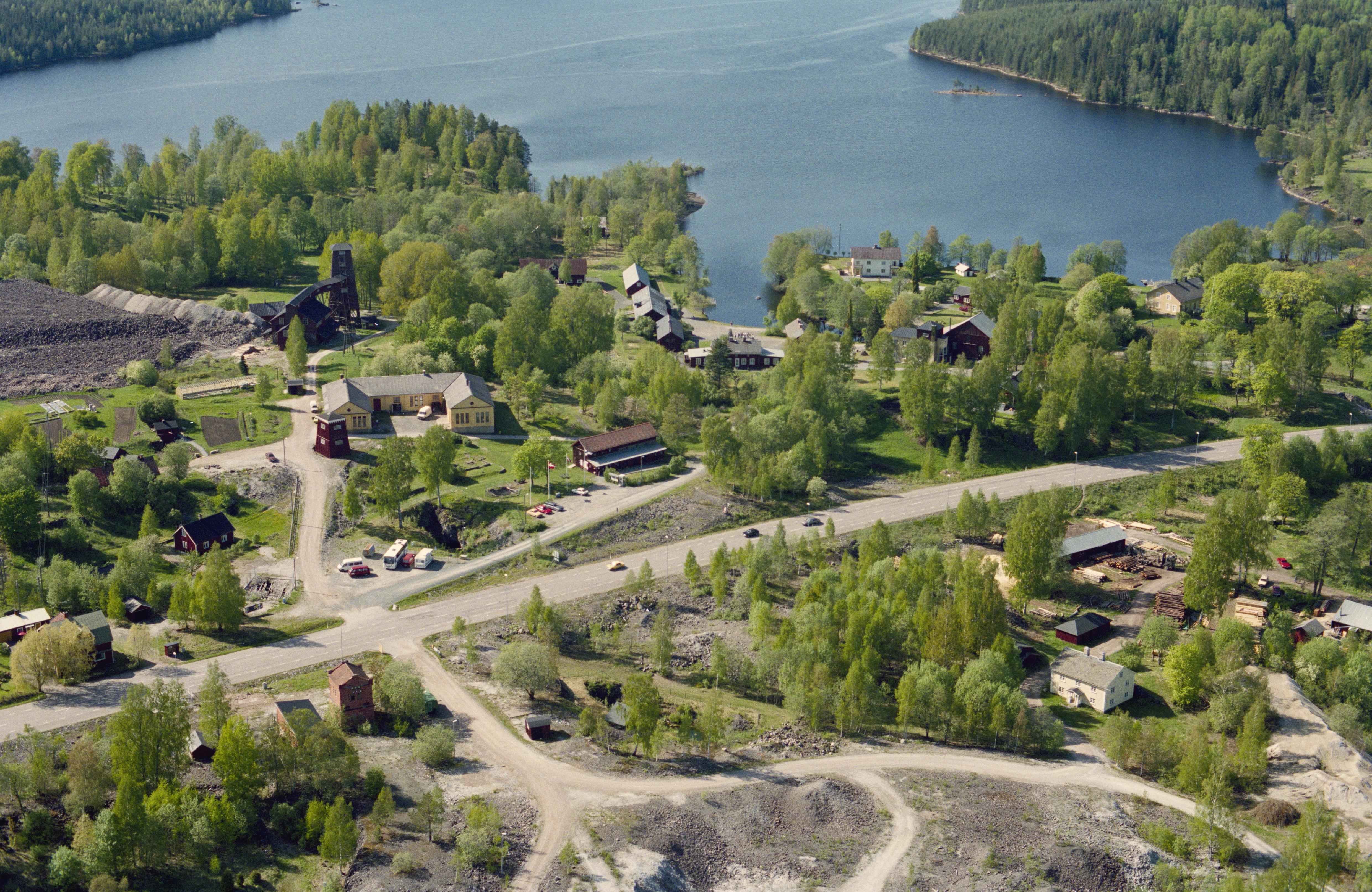 Beskrivning: Långban by mellan sjöarna Långban och Hyttsjön (i bildens övre del). Vid bildens mitt gruvområde RAÄnr Färnebo 548:1-6 och herrgården John Ericssongården, byggnadsminne RAÄnr Färnebo 557:1. Bilden är tagen mot (väderstreck): VNV
