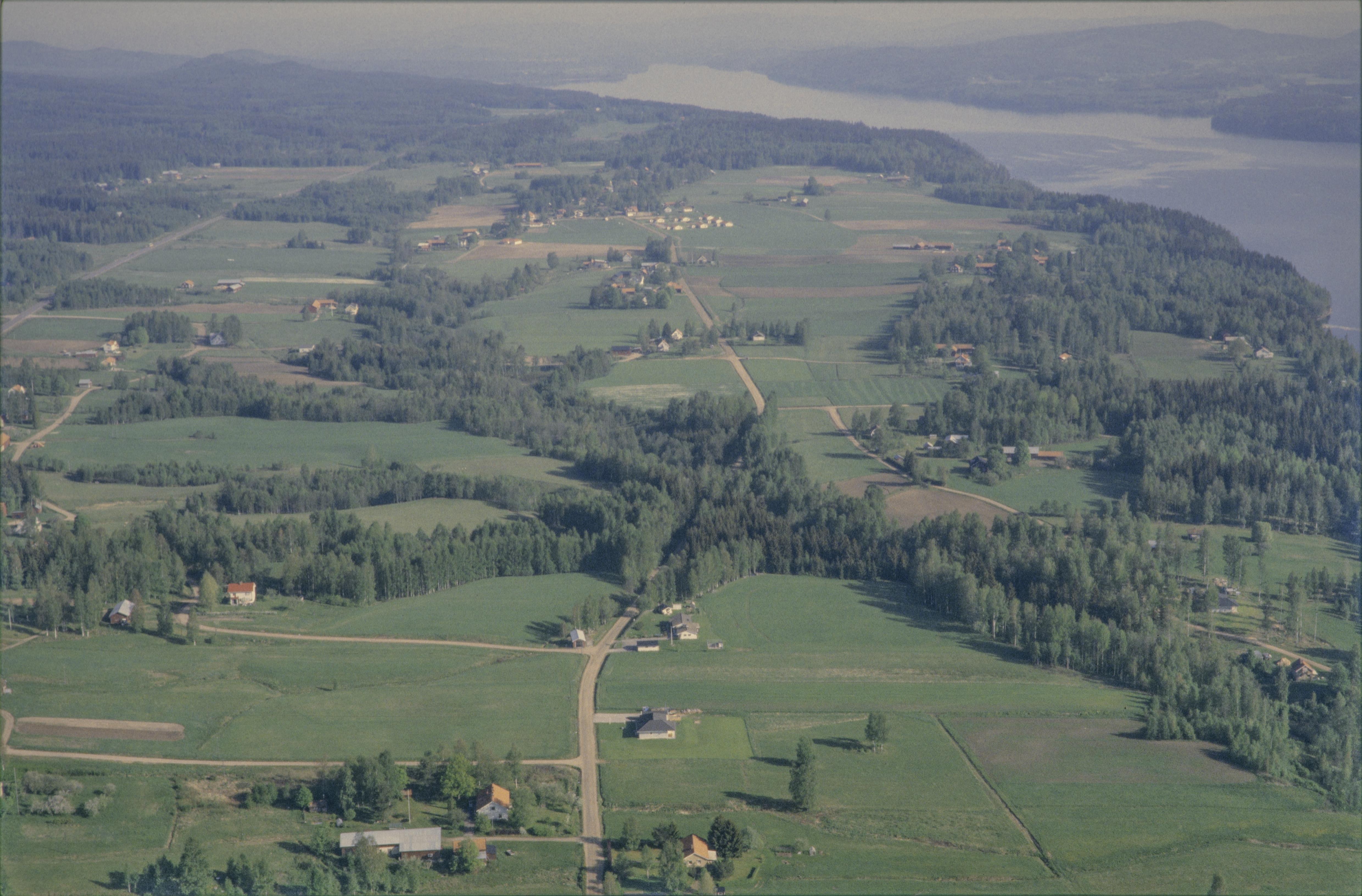 Beskrivning: Bjälveruds by på västra sidan av sjön Övre Fryken. Vid Karlsvik till höger om bildens mitt fyndplats RAÄnr Lysvik 179. Bilden är tagen mot (väderstreck): NNV