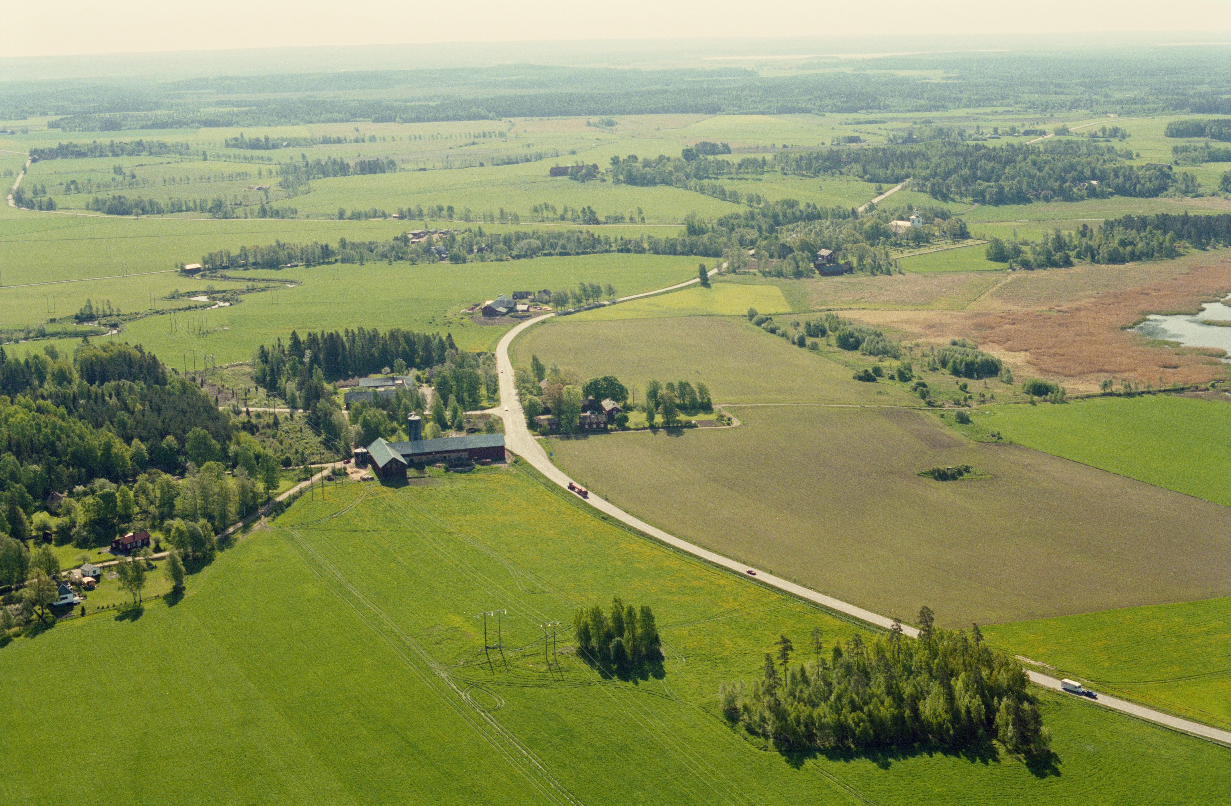 Beskrivning: Östra Ve med kronofogdebostället RAÄnr Väse 64:1 vid bildens mitt. I bildens övre del Väse kyrka. Bilden är tagen mot (väderstreck): OSO