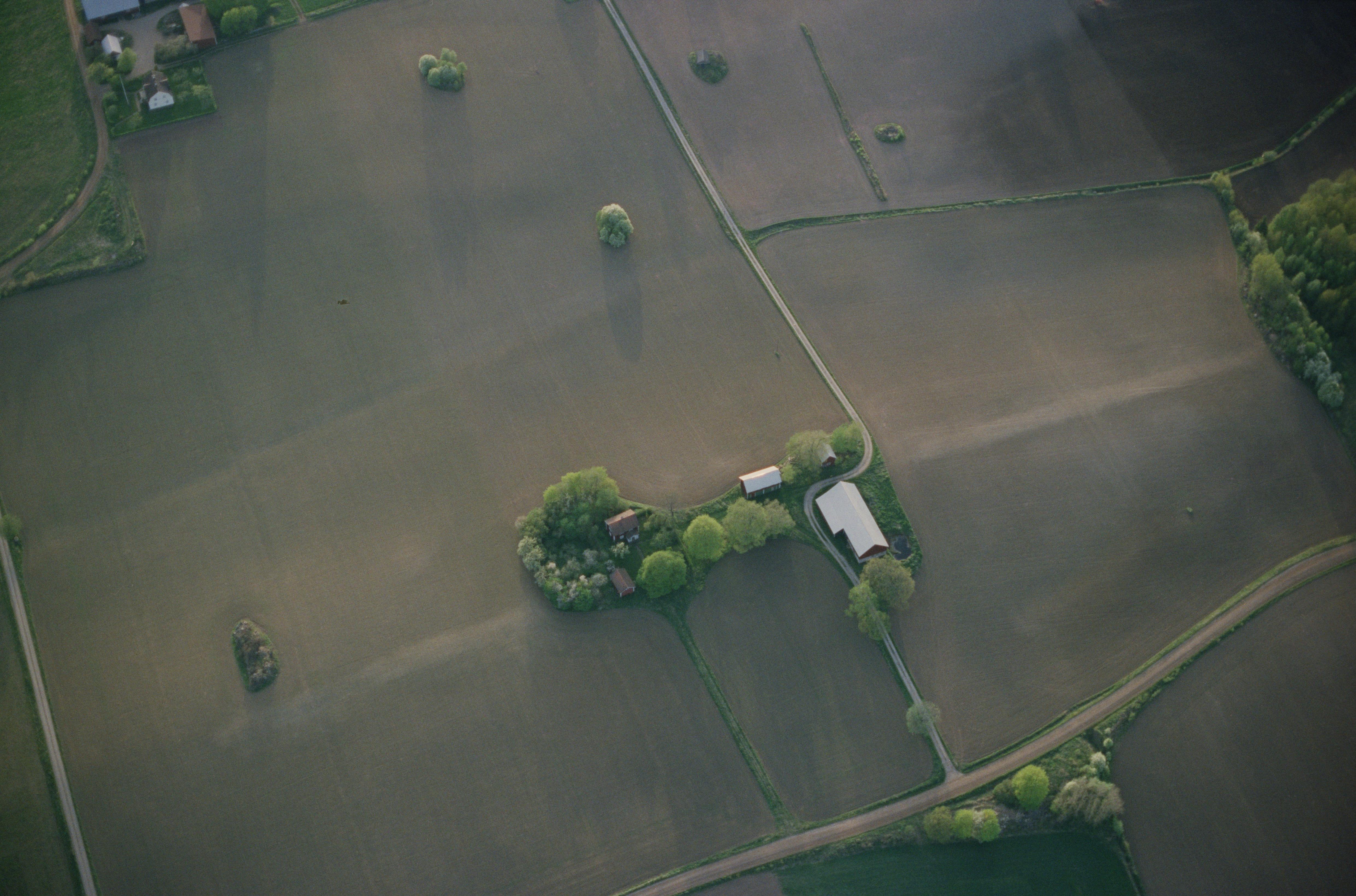 Beskrivning: Drumlinområde. Gippersta gård. Fyndplats (stenyxa) RAÄnr Hackvad 50:1 i bildens övre del. Bilden är tagen mot (väderstreck): V