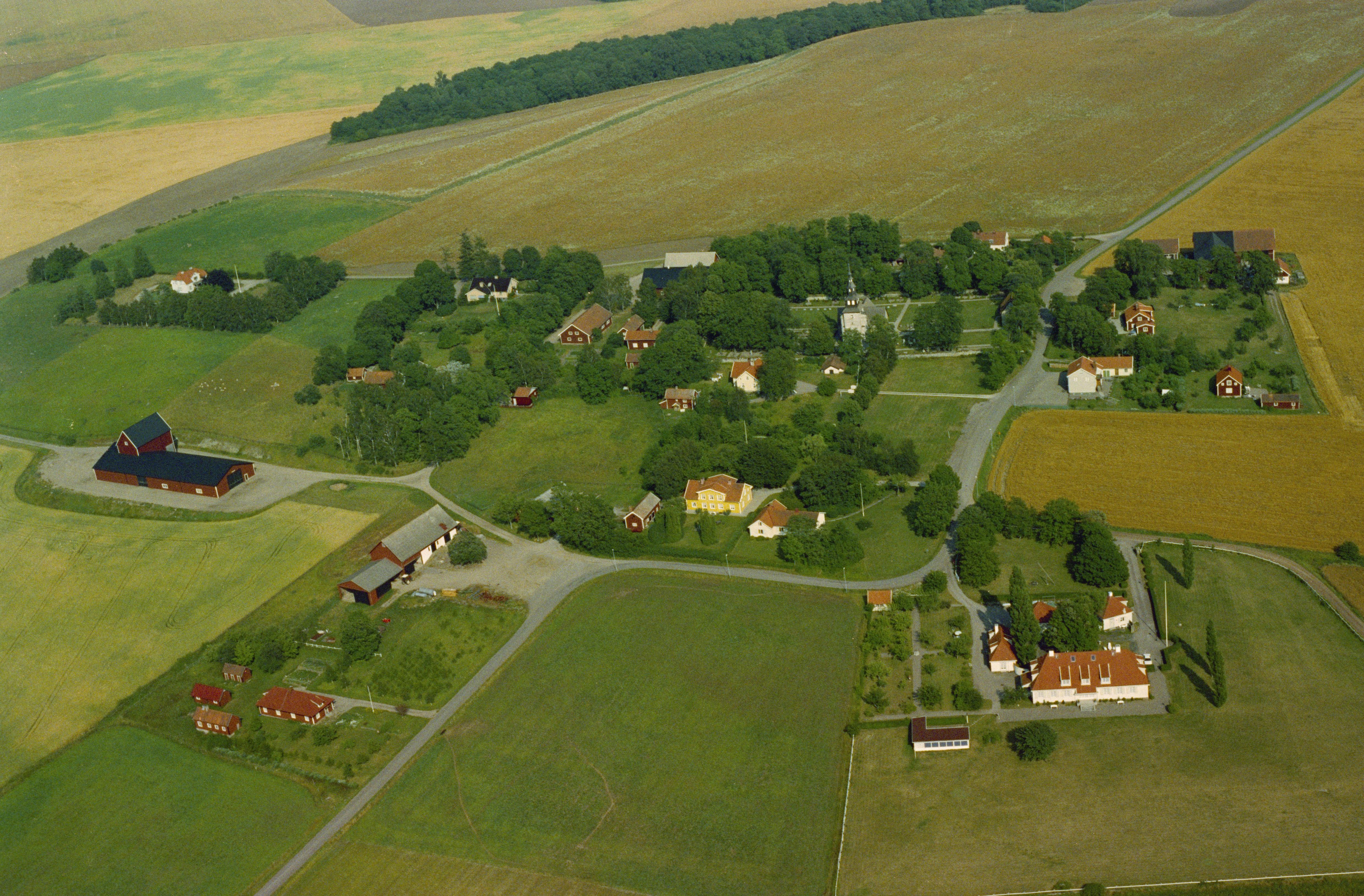 Beskrivning: Örberga kyrka och kyrkby. Bilden är tagen mot (väderstreck): Ö
