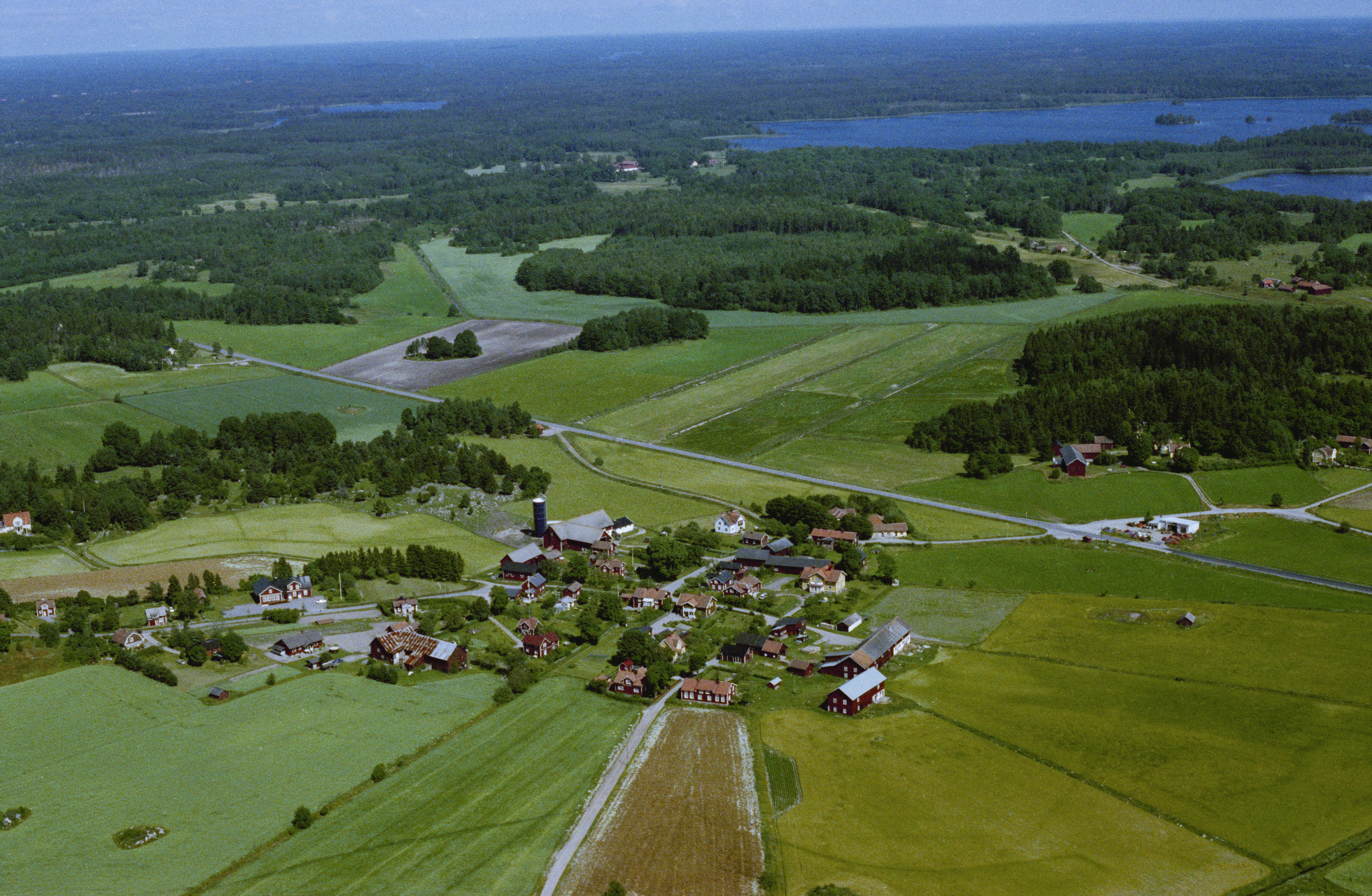 Beskrivning: Sättraby. I bildens övre del sjön Erken i socknet Lohärad. Bilden är tagen mot (väderstreck): NO
