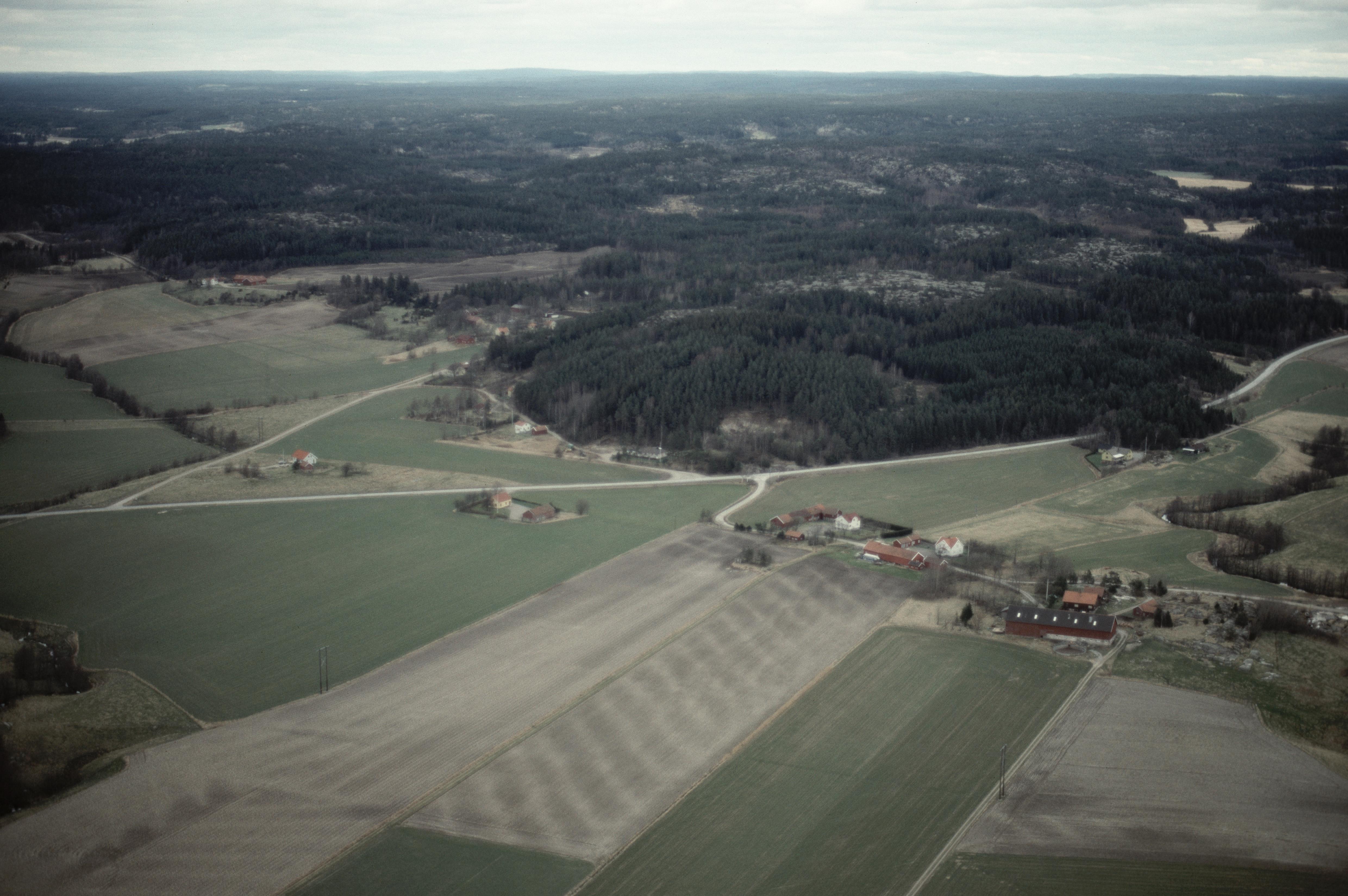 Beskrivning: Tanumsslätten. Gramseälven till höger. Hällristningsområde i fornlämningsrik dalgångsbygd. Hällristning RAÄnr Tanum 253:1, 254:1 m.fl. vid bildens mitt. Bilden är tagen mot (väderstreck): N