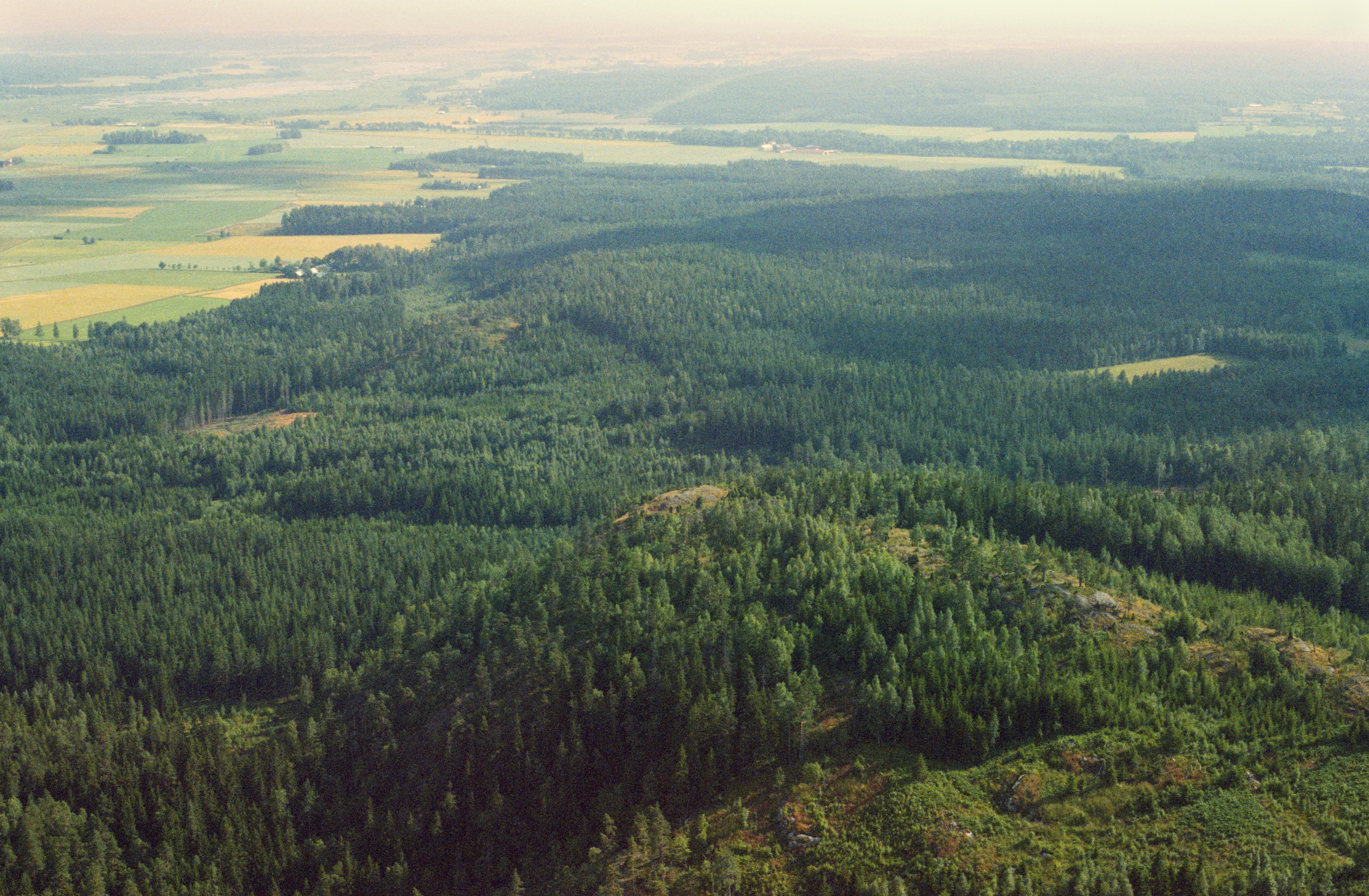Beskrivning: Fornborg Ullavi klint RAÄnr Kil 43:1 vid bildens mitt. Till vänster vid bildens mitt fornborg RAÄnr Kil 47:1 och Algutstorp. Bilden är tagen mot (väderstreck): SO