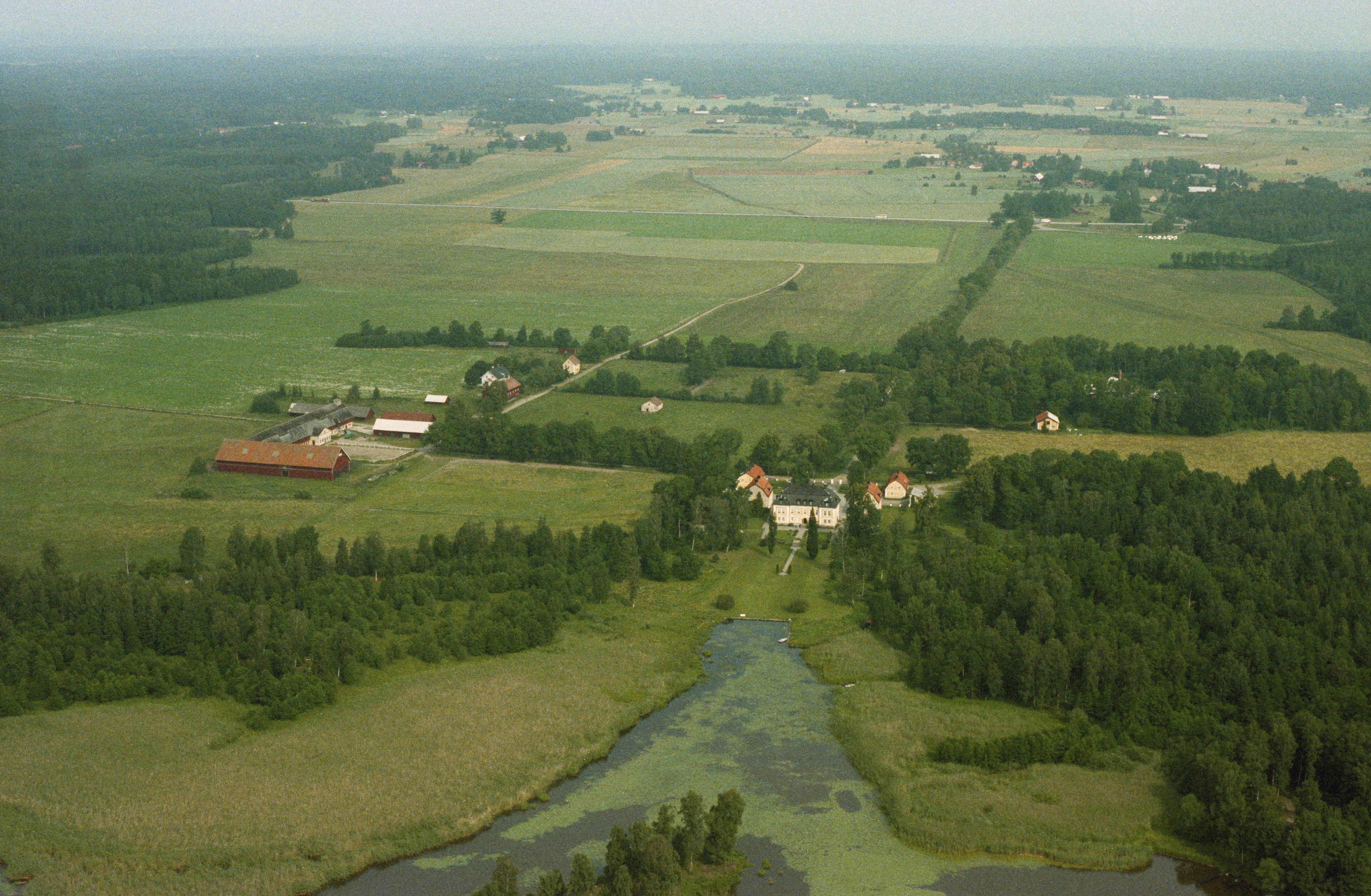 Beskrivning: Esplunda herrgård (skrivs även Äsplunda) RAÄnr Rinkaby 27:1 vid Hemfjärden i sjön Hjälmaren. Bilden är tagen mot (väderstreck): NV