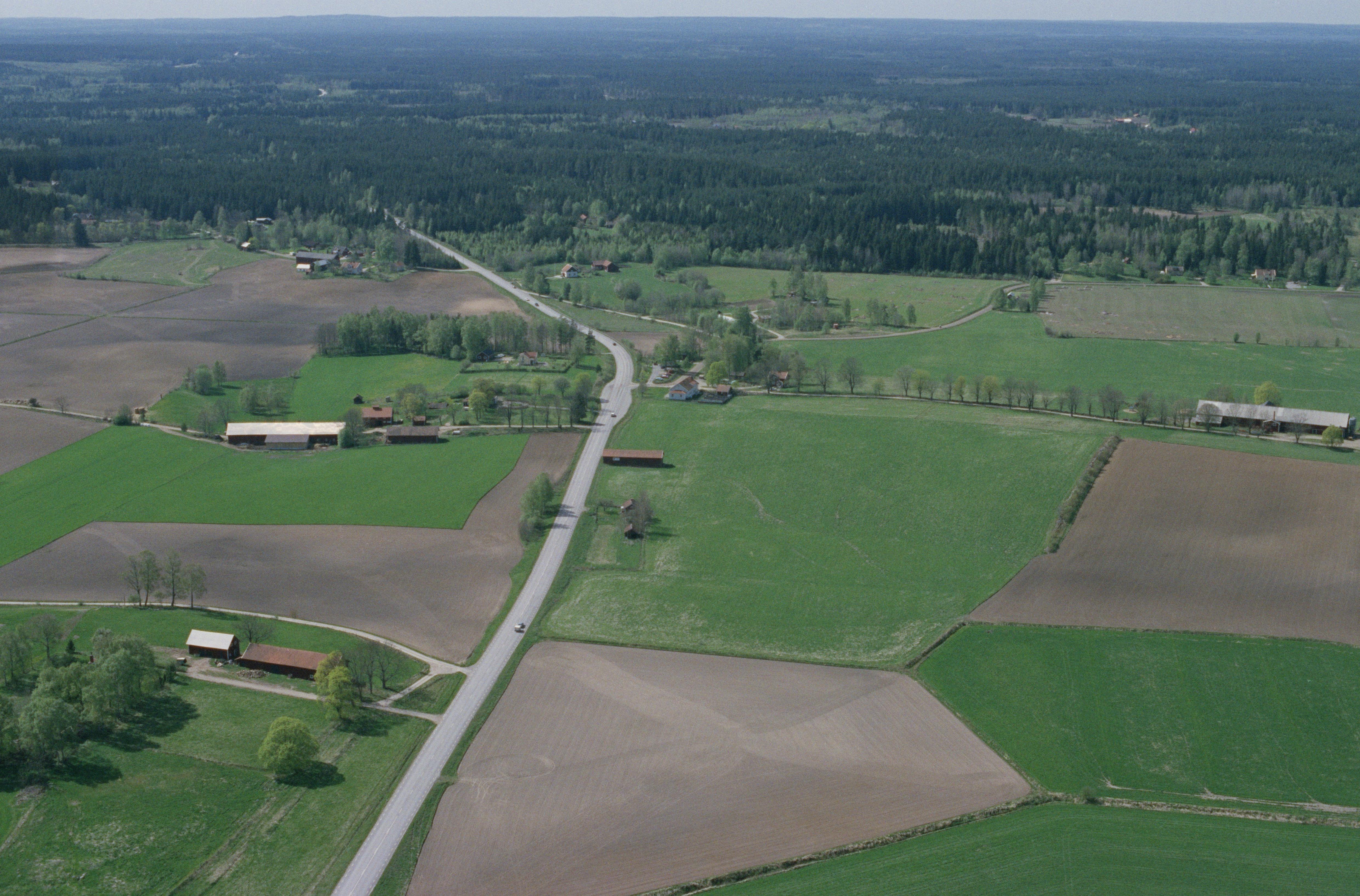 Beskrivning: Vibyslätten innan vägbygge av E3 / E20 sydväst om Vibysjön. Vid bildens mitt bytomt RAÄnr Viby 348 m.fl. I bildens övre del Västra Backa, Västra Härja och Lindbacka. Bilden är tagen mot (väderstreck): SV