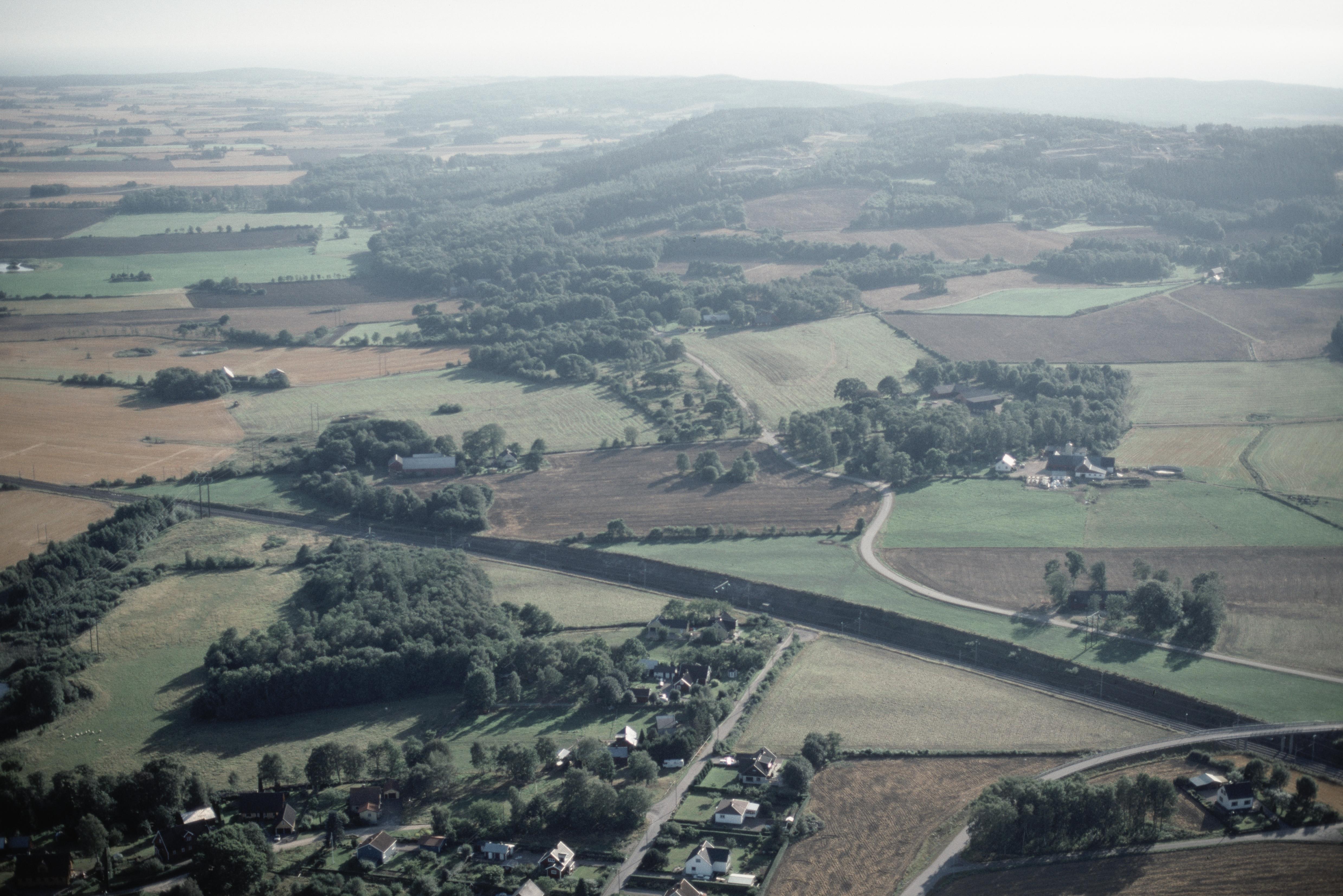 Beskrivning: Vid Hörsås - Lilla Berg - Öringe, innan bygge av väg E6 mellan Laholm och Slöinge. Område med högar och fornåkrar bl.a RAÄnr Getinge 26:1. Bilden är tagen mot (väderstreck): SV