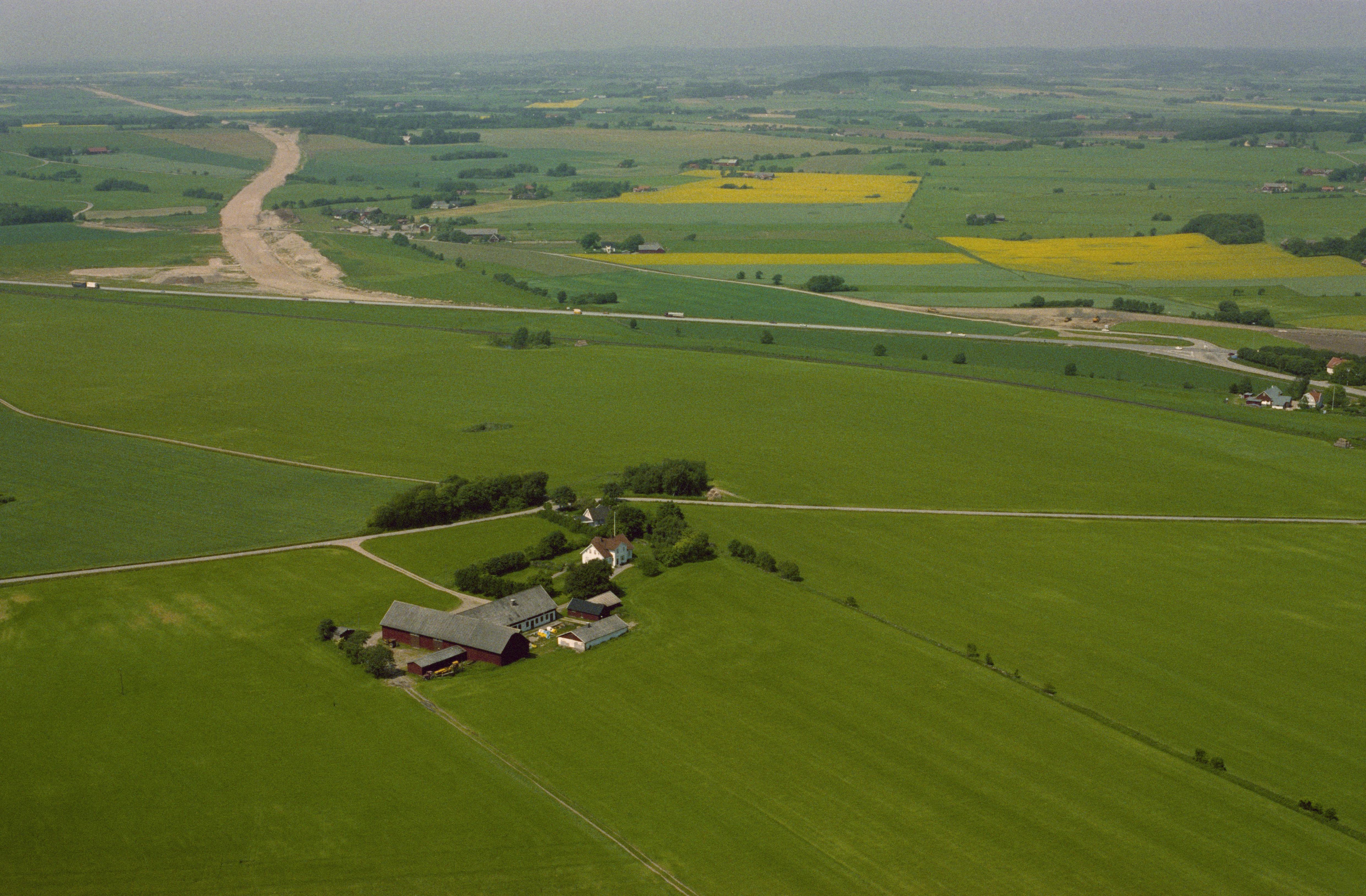 Beskrivning: Väg E6 byggs vid området Broen, sydväst om Heberg, vid gränsen mellan socknen Skrea och Årstad. Bilden är tagen mot (väderstreck): NV