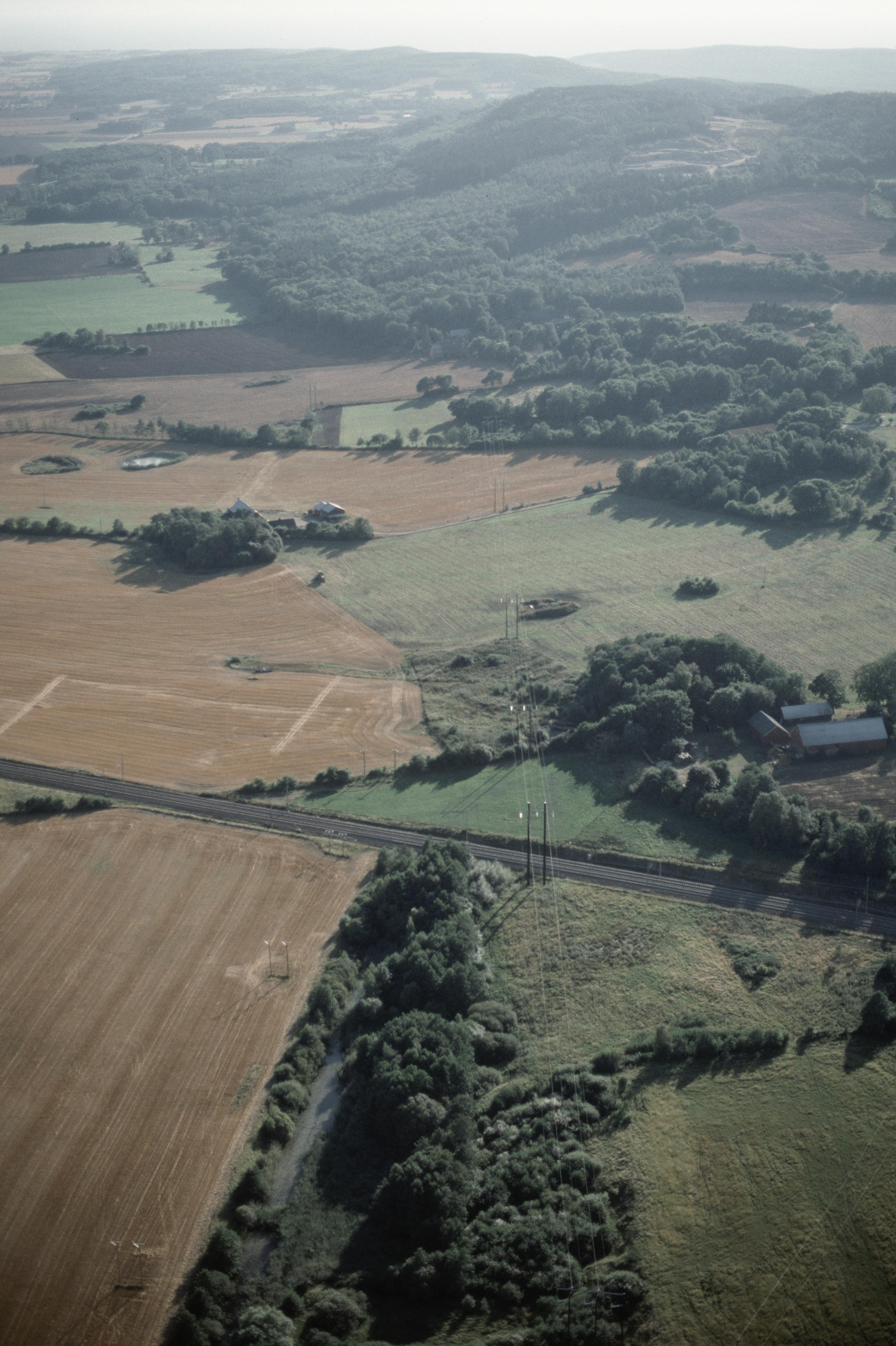 Beskrivning: Vid Hörsås - Lilla Berg - Öringe, innan bygge av väg E6 mellan Laholm och Slöinge. Område med högar och fornåkrar bl.a RAÄnr Getinge 26:1. Bilden är tagen mot (väderstreck): SV