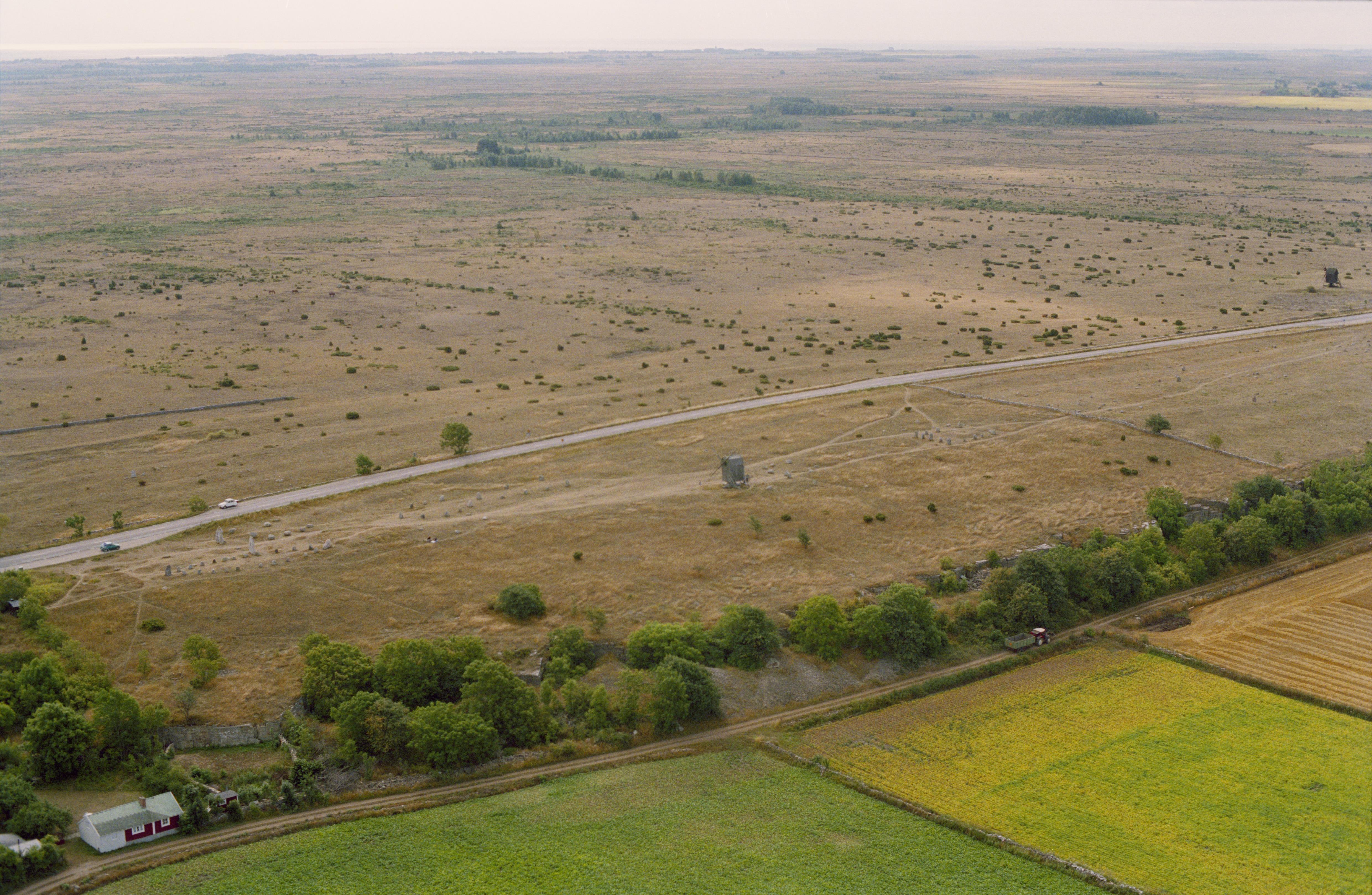 Beskrivning: Anmärkning (övrig): Riksintresse-nr/namn: H5 - Albrunna - Vickleby. Socken: Södra Möckleby, Smedby, Kastlösa, Mörbylånga, Resmo och Vickleby socknar. Motivering: Öppet odlingslandskap med mycket lång kontinuitet och differentierat näringsfång längs västra landborgen med fornlämningsmiljöer och radbyar med malmbebyggelse från 1800- och 1900-talen. Väl sammanhållna sockencentrum med flera medeltida kyrkor. (Tidigindustriell miljö). - Uttryck för riksintresset: Bland närmare 550 fornlämningar märks främst gånggrifter vid Resmo, stora högar och röse från bronsålder vid bla Mysinge resp öns enda klintborg i Bårby, stora och varierade gravfält vid Gettlinge och Stora Dalby, husgrundskoncentrationer i Södra Möckleby (…) Texten i detta fält har förkortats vid migrering till e-arkivet. Se filbilagan extra.xml för fullständig information under note_archivist. Beskrivning: Gettlinge gravfält RAÄnr Södra Möckleby 10:1. Bilden är tagen mot (väderstreck): SO Fotosyfte: Flygbildsdokumentation