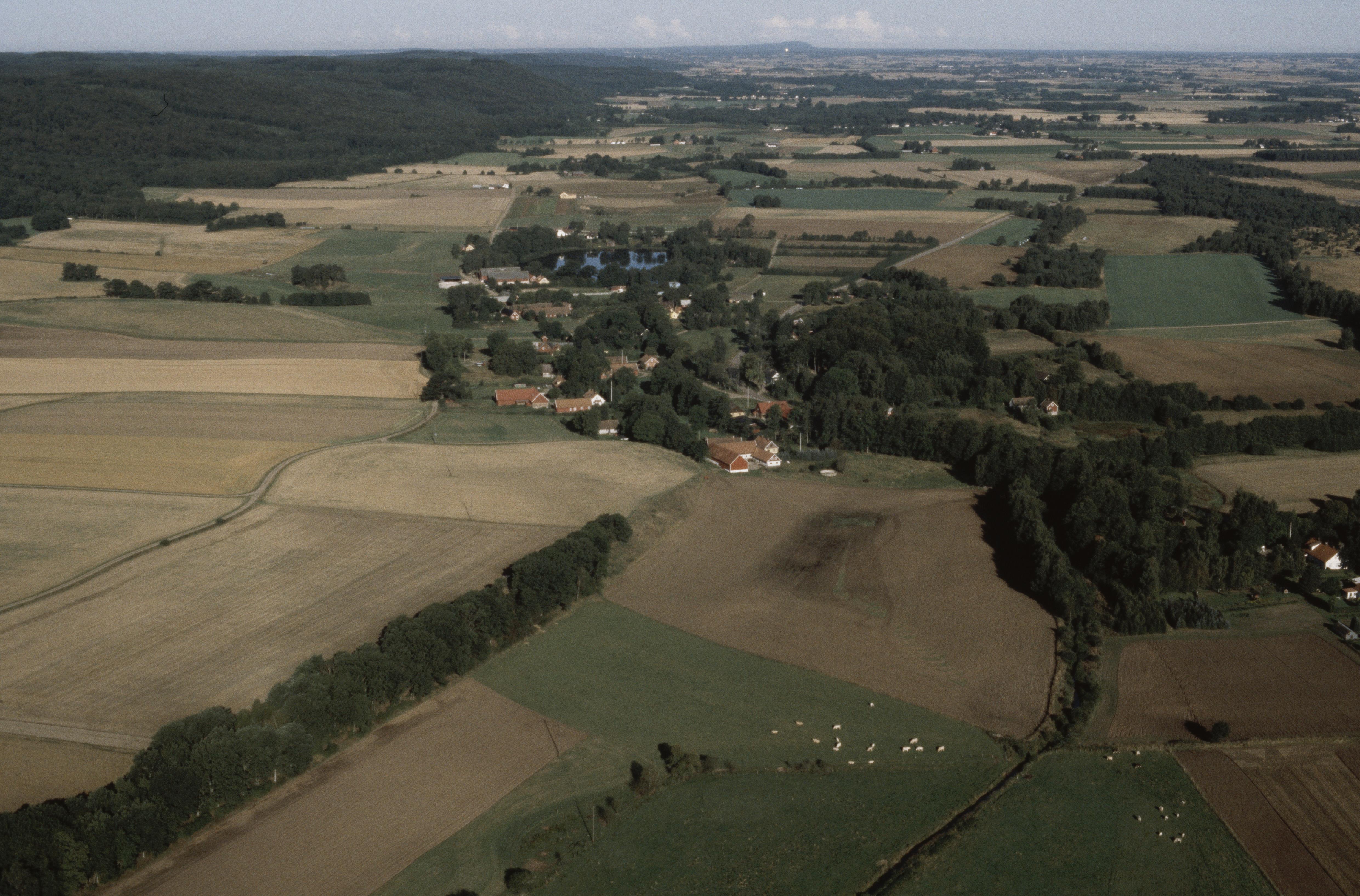 Beskrivning: Bonnarps by väster om tätorten Ljungbyhed. Boplats RAÄnr Riseberga 209:1 m.fl. vid bildens mitt. Bonnarpssjön vid bildens mitt, Skärån till höger. Bilden är tagen mot (väderstreck): VNV